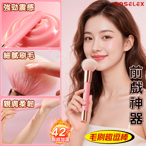 ROSELEX 勞樂斯 ‧ 趣逗棒(含毛刷)10段高頻震智能加溫按摩棒 強震/酥麻/輕巧/隱蔽/挑逗柔軟毛刷-粉