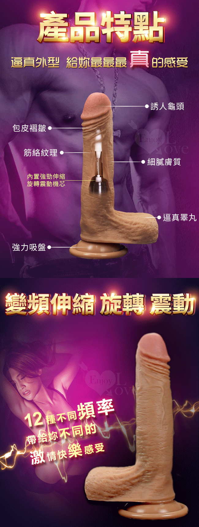 滿3000元贈品*Muscle 真肌樂‧超肉感逼真12段頻多功能伸縮+旋轉+震動陽具