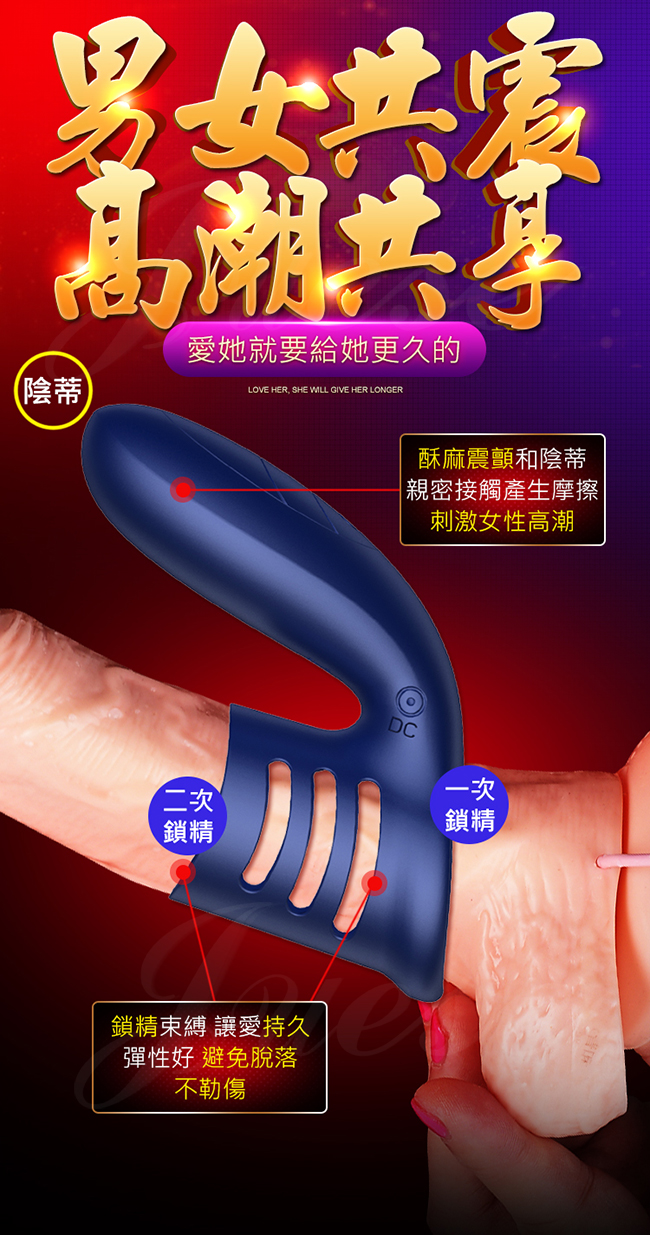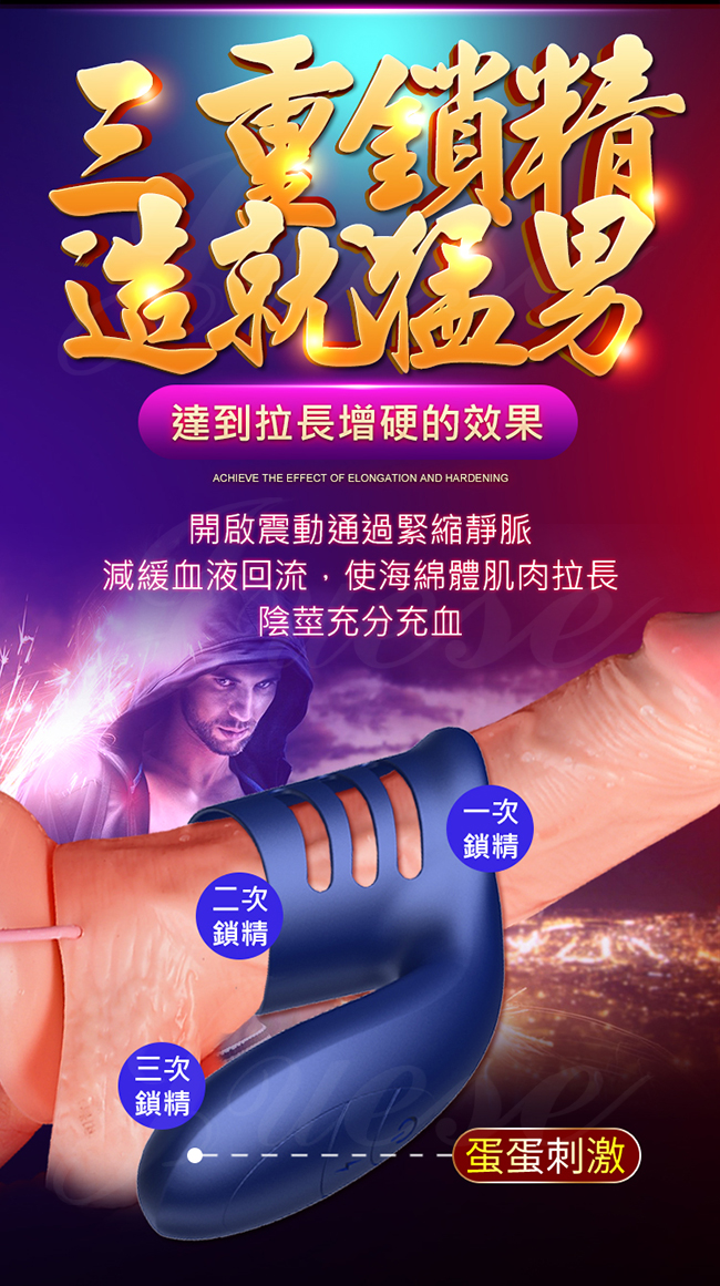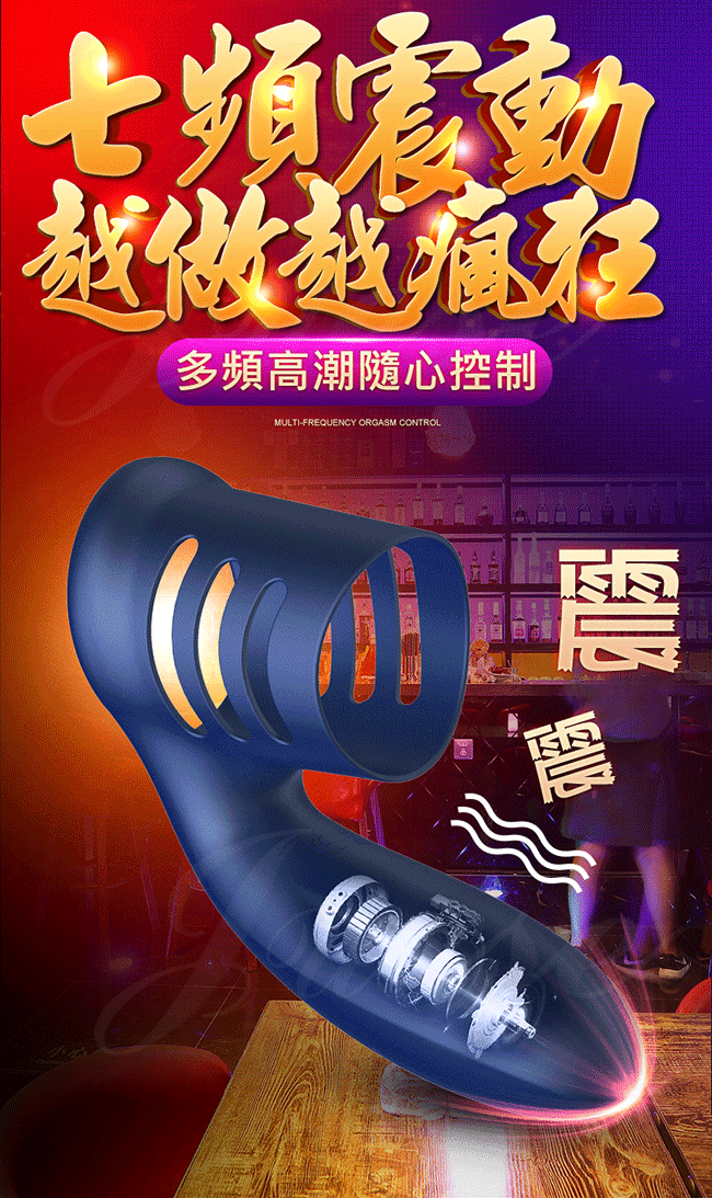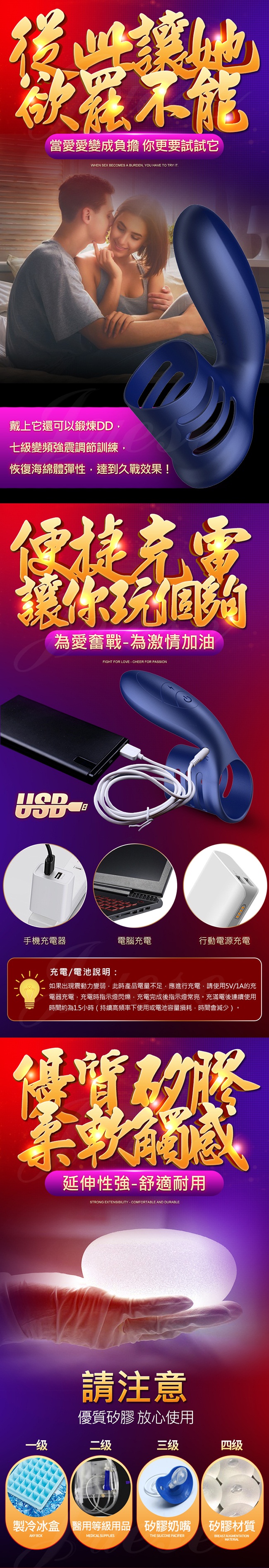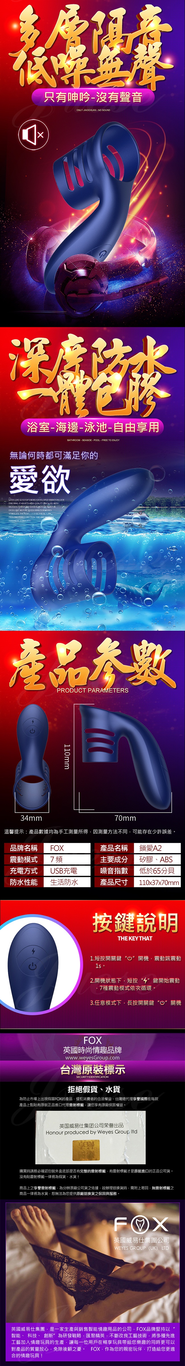 英國FOX-鎖愛A2 7頻變頻酥麻震顫矽膠鎖精環-藍色