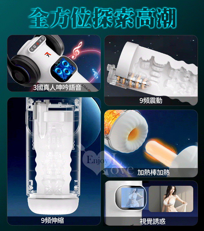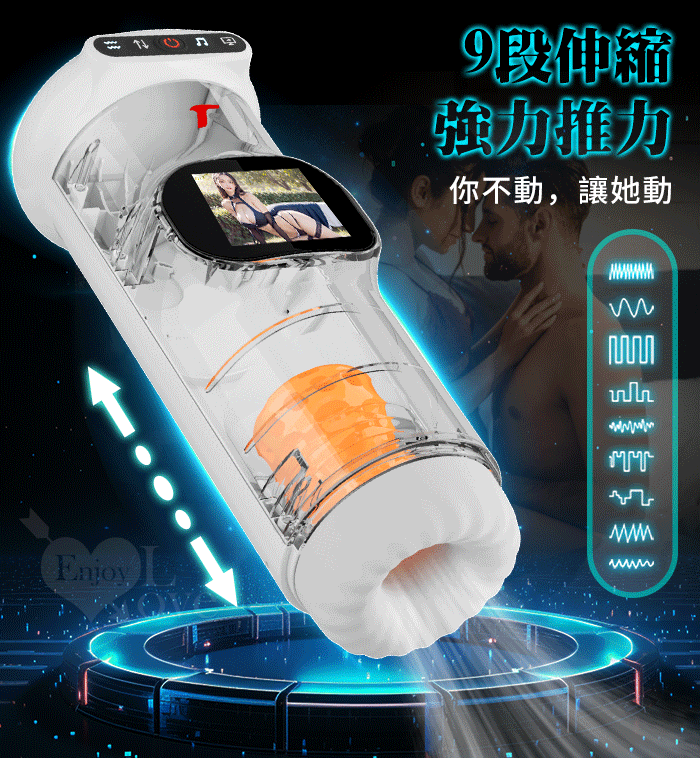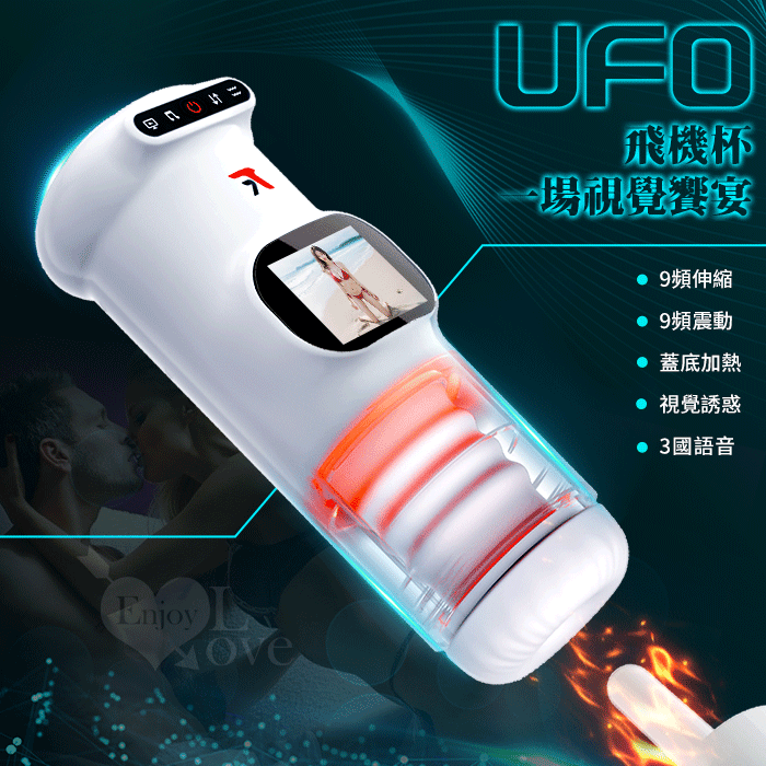 UFO飛機杯 ‧ 9X9伸縮+震動肉粒滿腔智能加溫自慰杯﹝視覺美女圖 邊看邊撸+真人呻吟語音+液晶螢幕顯示+USB充電﹞