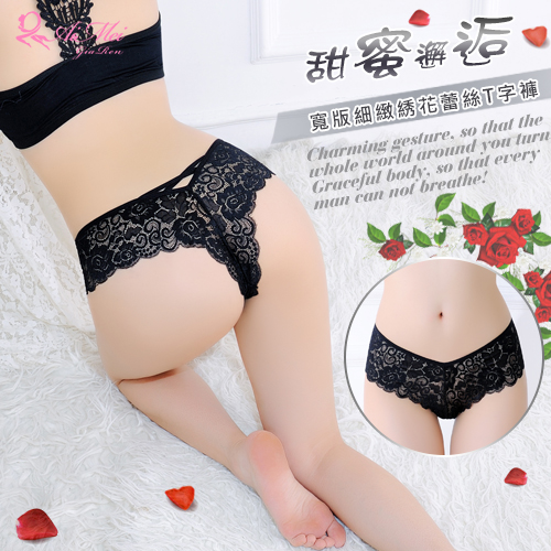 ►您現在的位置:首頁>甜蜜邂逅!細緻綉花寬版蕾絲美型T字褲﹝黑﹞
