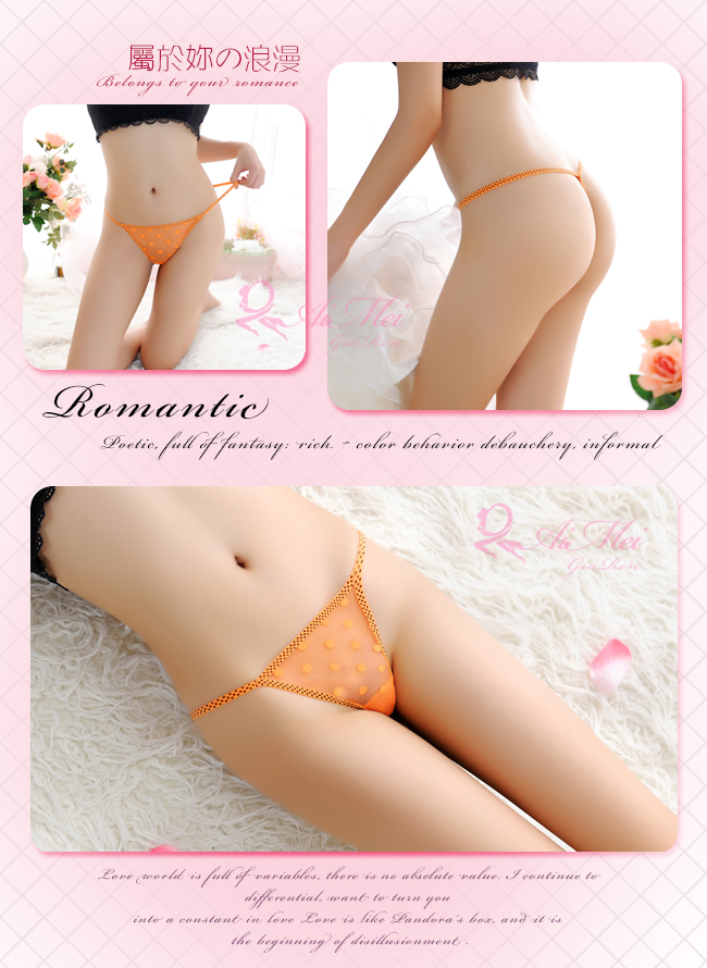 愛戀接觸!透膚迷人點點網紗丁字褲﹝橙﹞