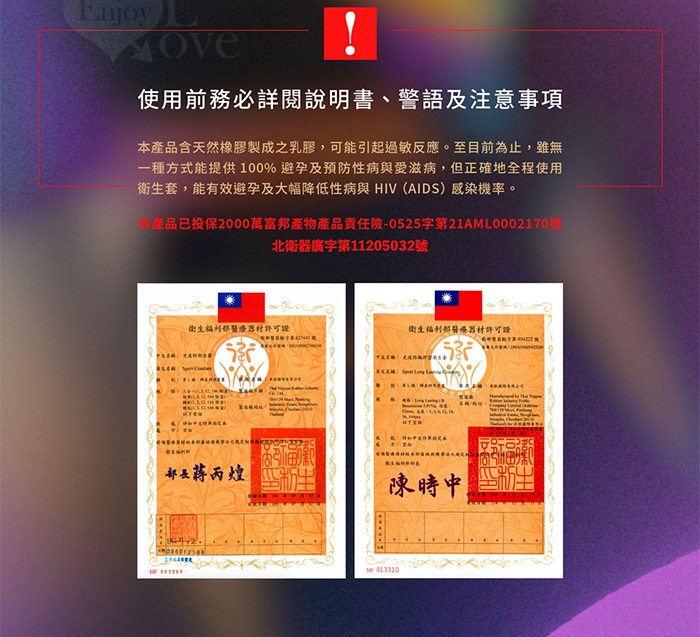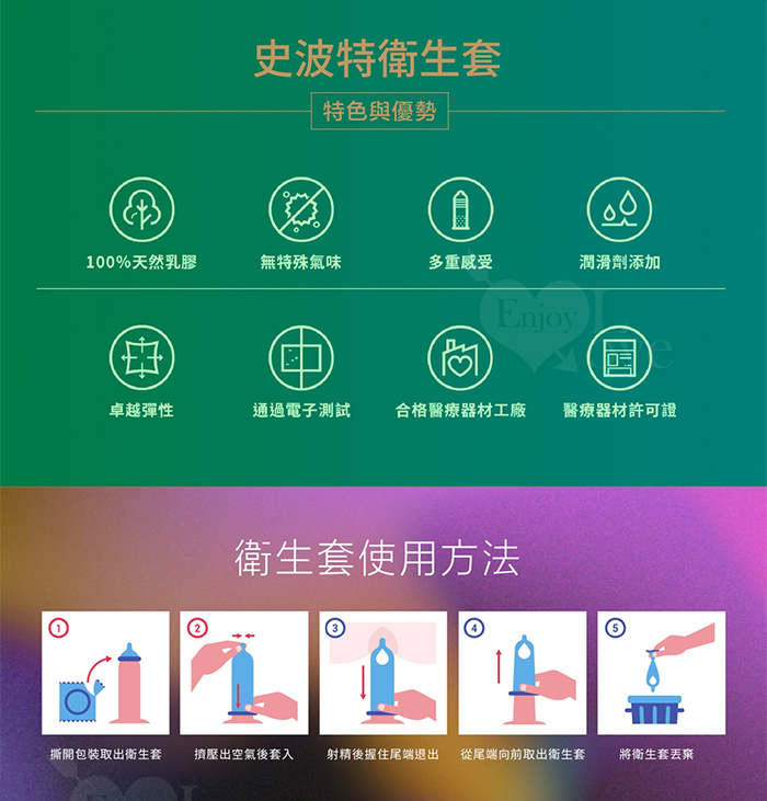成分 : 由天然橡膠製成,含有潤滑劑及儲精袋設計
