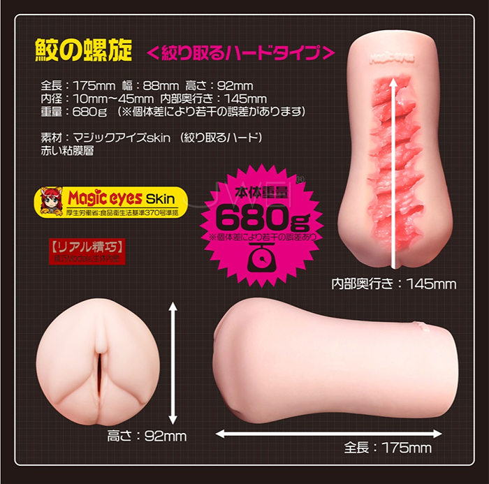 ►您現在的位置:首頁>日本原裝進口Magic eyes.鮫の螺旋 搾り取る 肉厚7迴旋通道自慰器-HARD