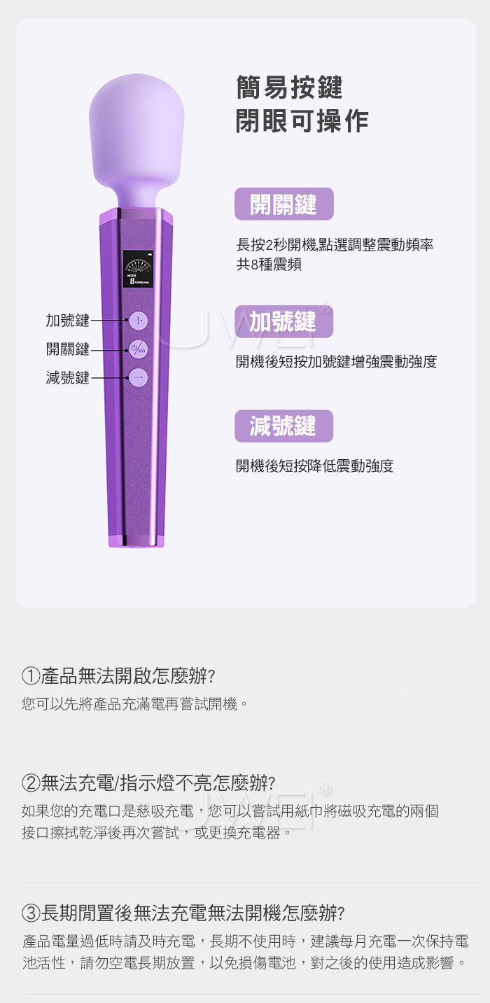 ►您現在的位置:首頁>迅潮.8頻8強大頭高頻爽震 360度靈活頭部 液晶數顯吹潮AV棒