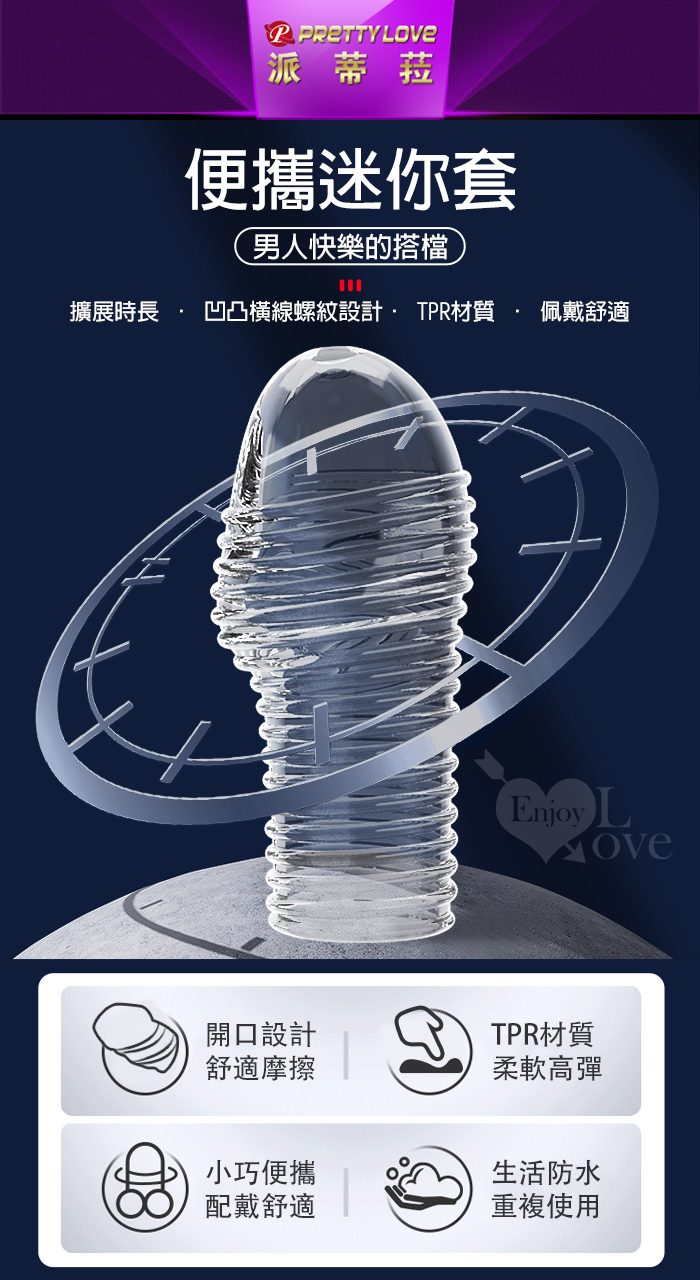 ►您現在的位置:首頁>派蒂菈 ‧ HOYTT 霍伊特 凹凸橫線螺紋刺激/隱身/持久/武裝強化老二造型套 - 頭部出精口設計