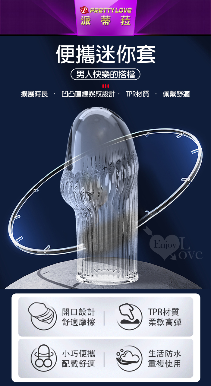 派蒂菈 ‧ HUEL 休爾 凹凸直線螺紋刺激/隱身/持久/武裝強化老二造型套 - 頭部出精口設計
