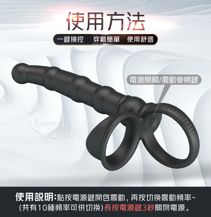 ►您現在的位置:首頁>派蒂菈 ‧ TATUM 塔圖姆 男用穿戴束精雙套環~10變頻震動後庭拉珠棒