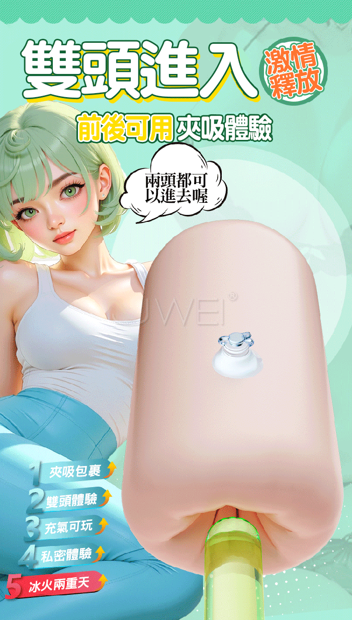 给你想要的,可加冷熱水 冰火雙享 雙頭進入 前後可用 夾吸包裹體驗 充氣可玩 清洗方便 產品規格 ■尺寸:大小詳如圖片標示 ■材質:PVC