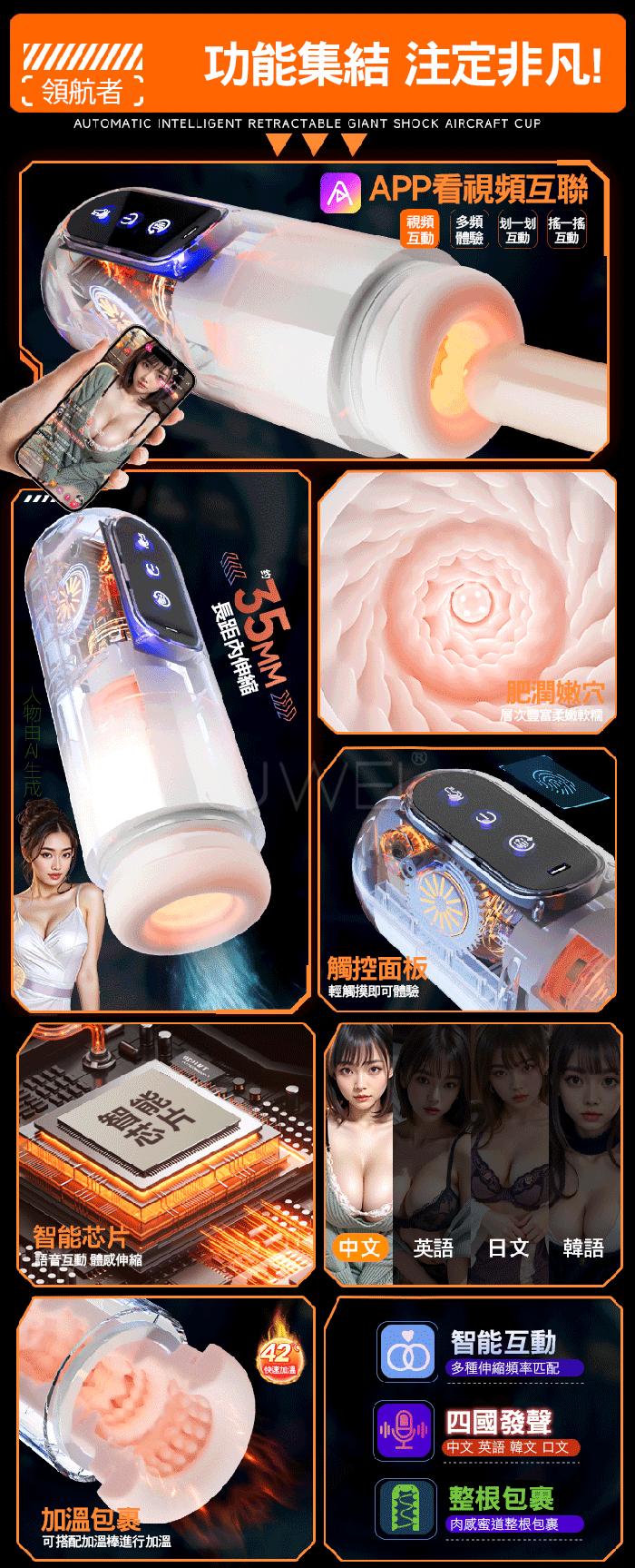 ►您現在的位置:首頁>領航者. 6頻長距伸縮旋轉 四國女優叫床 APP智能互動電動飛機杯