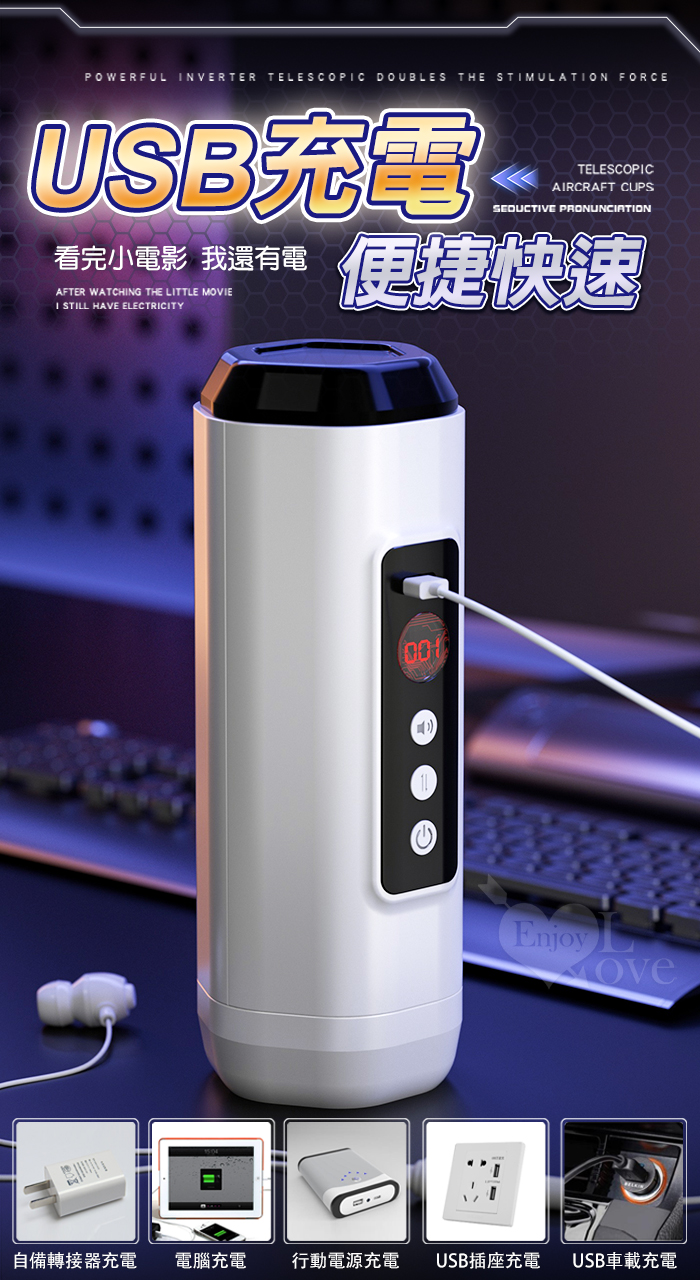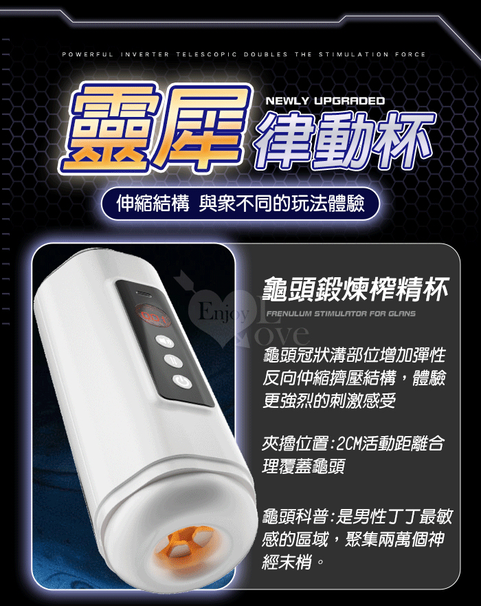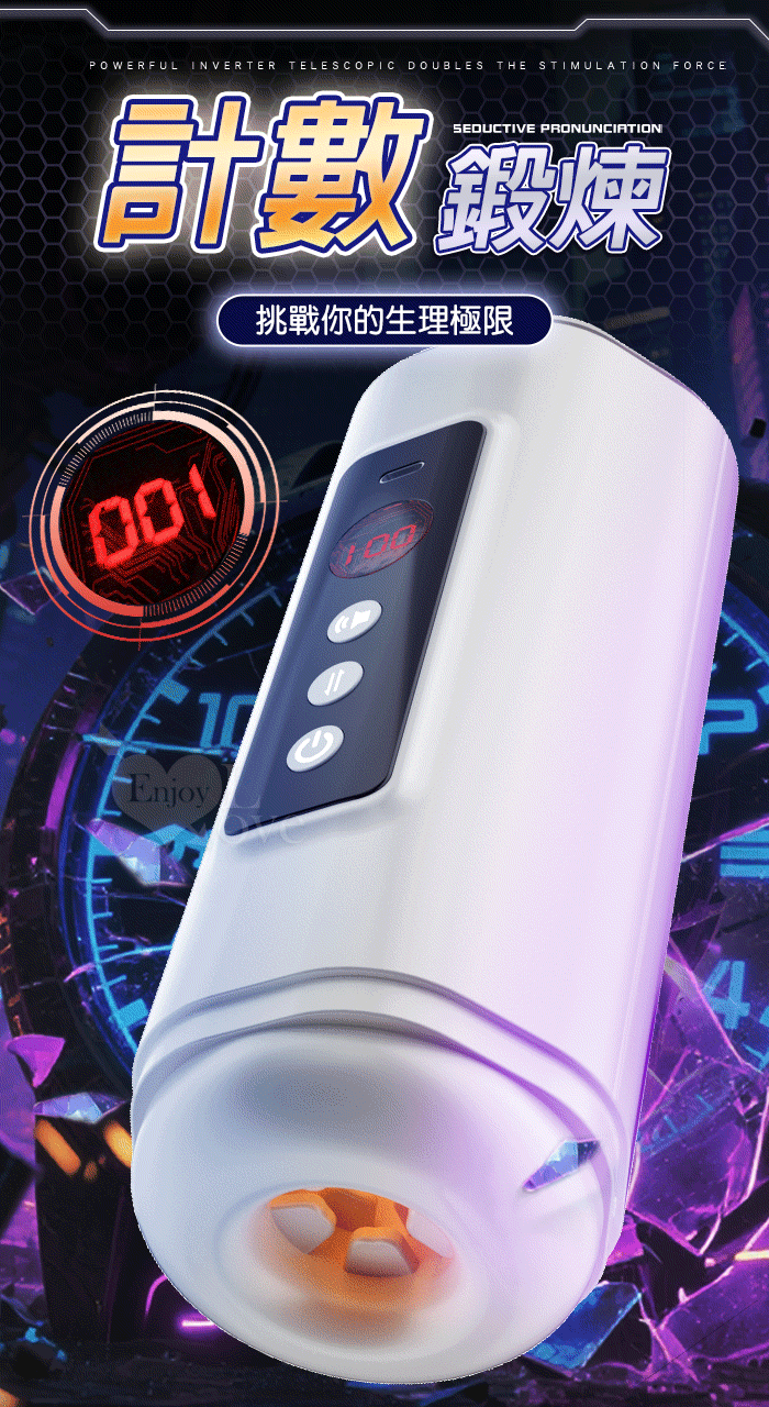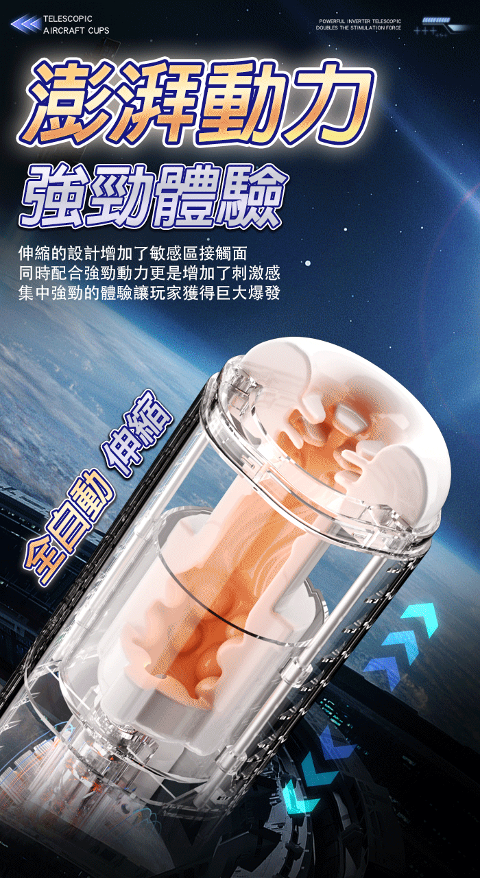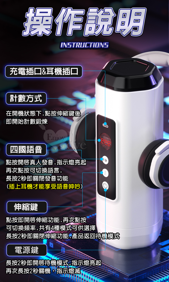 靈犀律動杯 ‧ 智能4頻調控伸縮+語音+計數鍛煉榨精飛機杯﹝四國語音呻吟+顆粒刺激腔道+耳機+USB充電﹞
