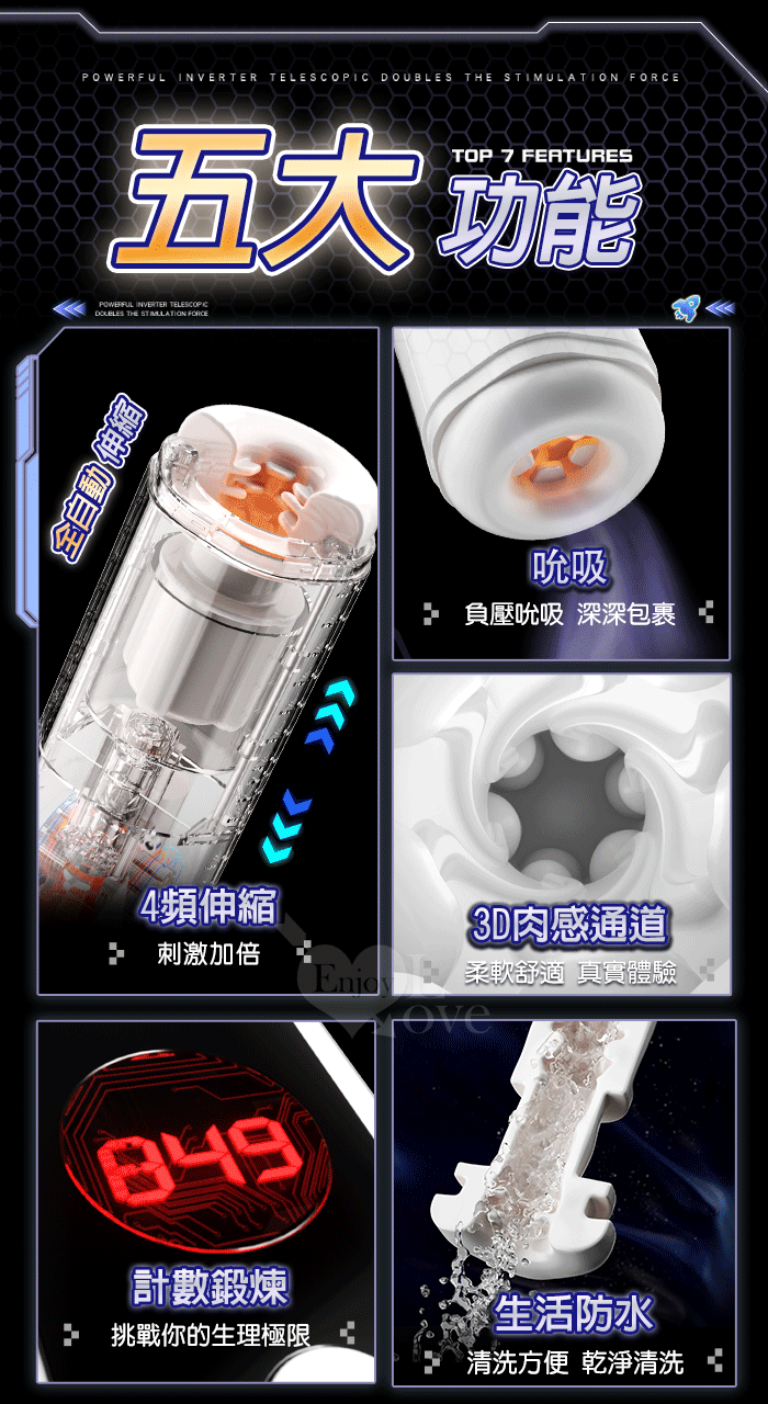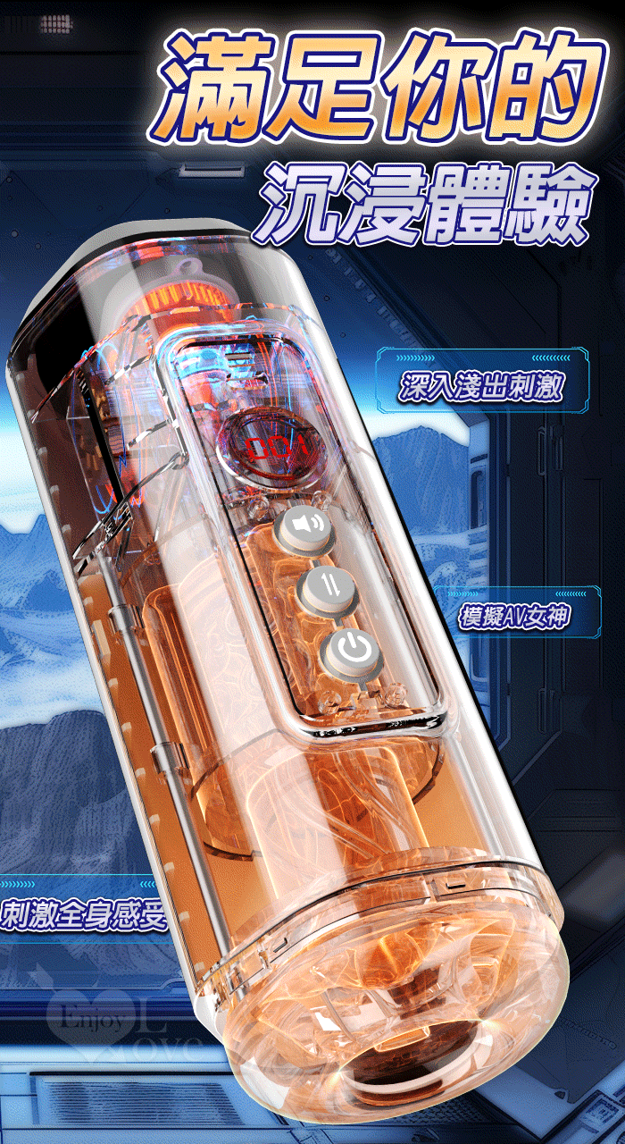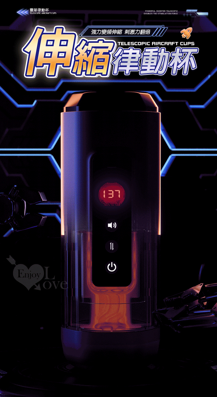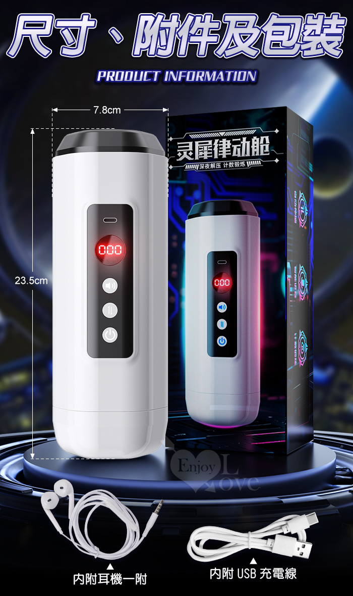 靈犀律動杯 ‧ 智能4頻調控伸縮+語音+計數鍛煉榨精飛機杯﹝四國語音呻吟+顆粒刺激腔道+耳機+USB充電﹞