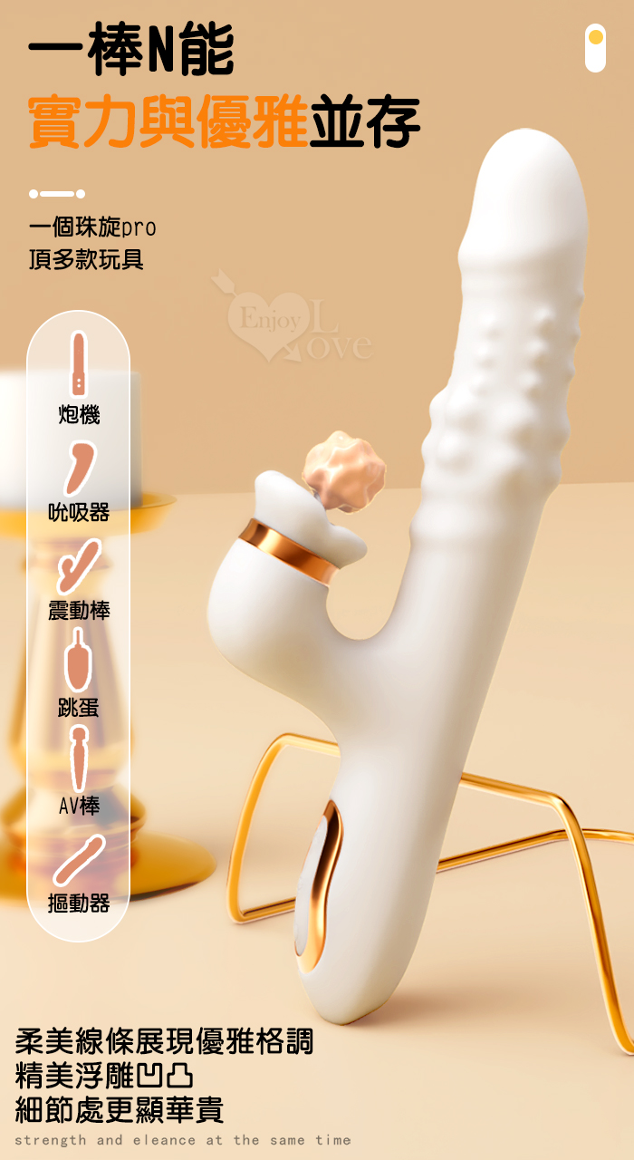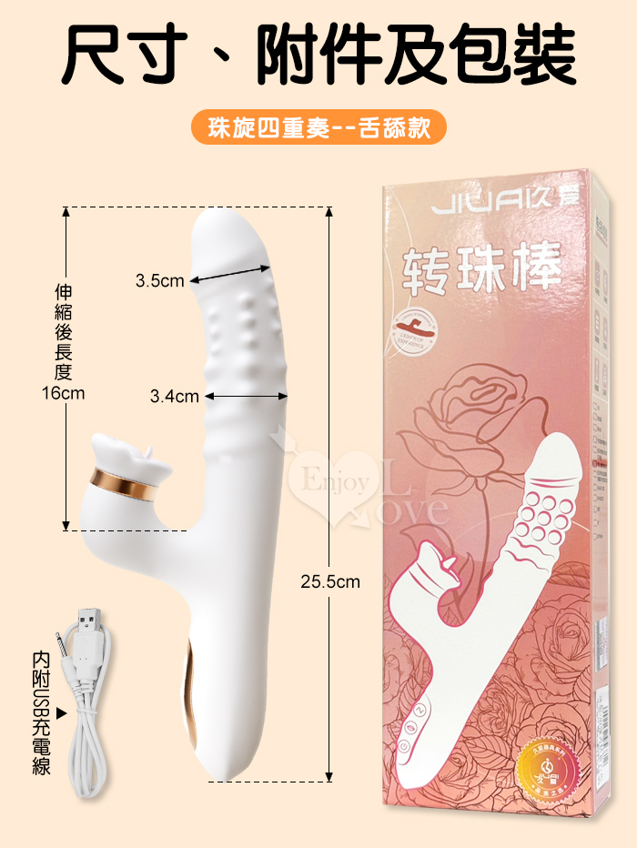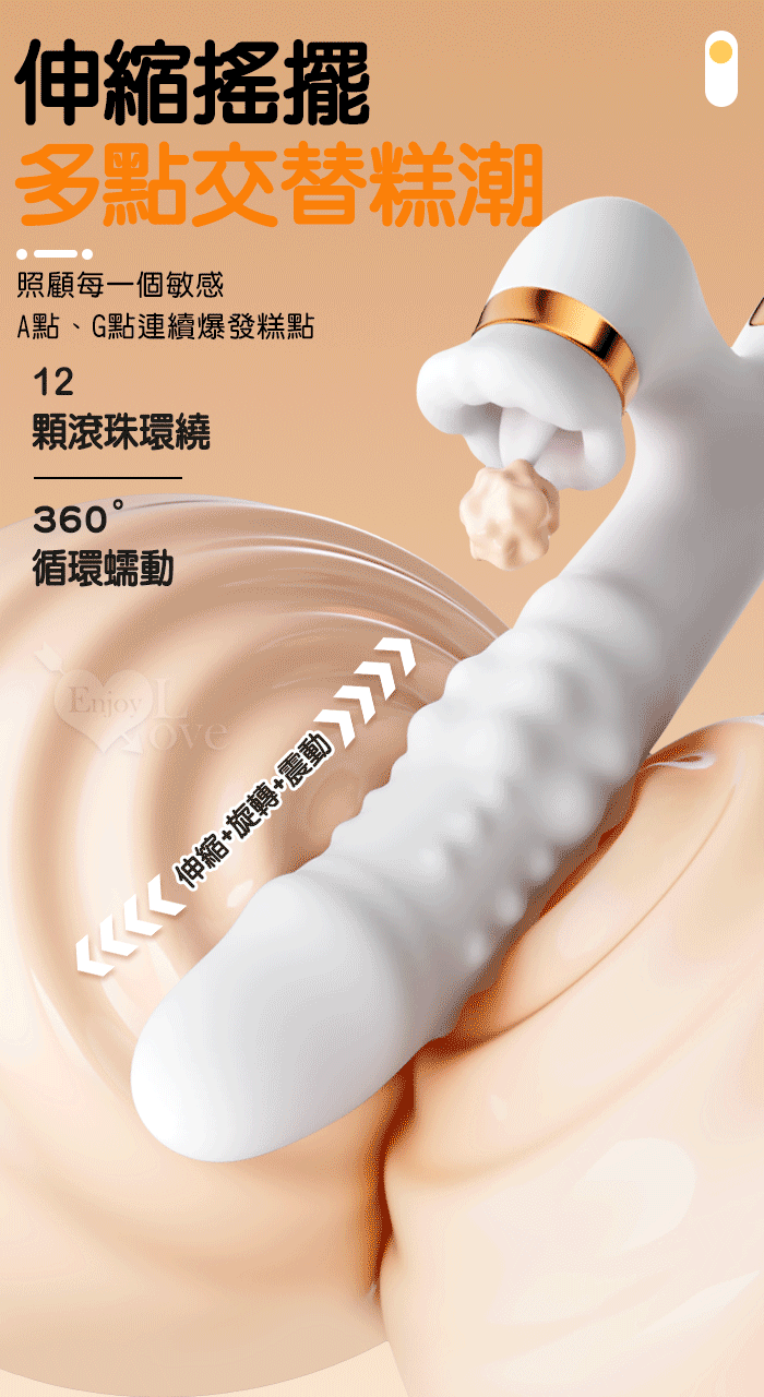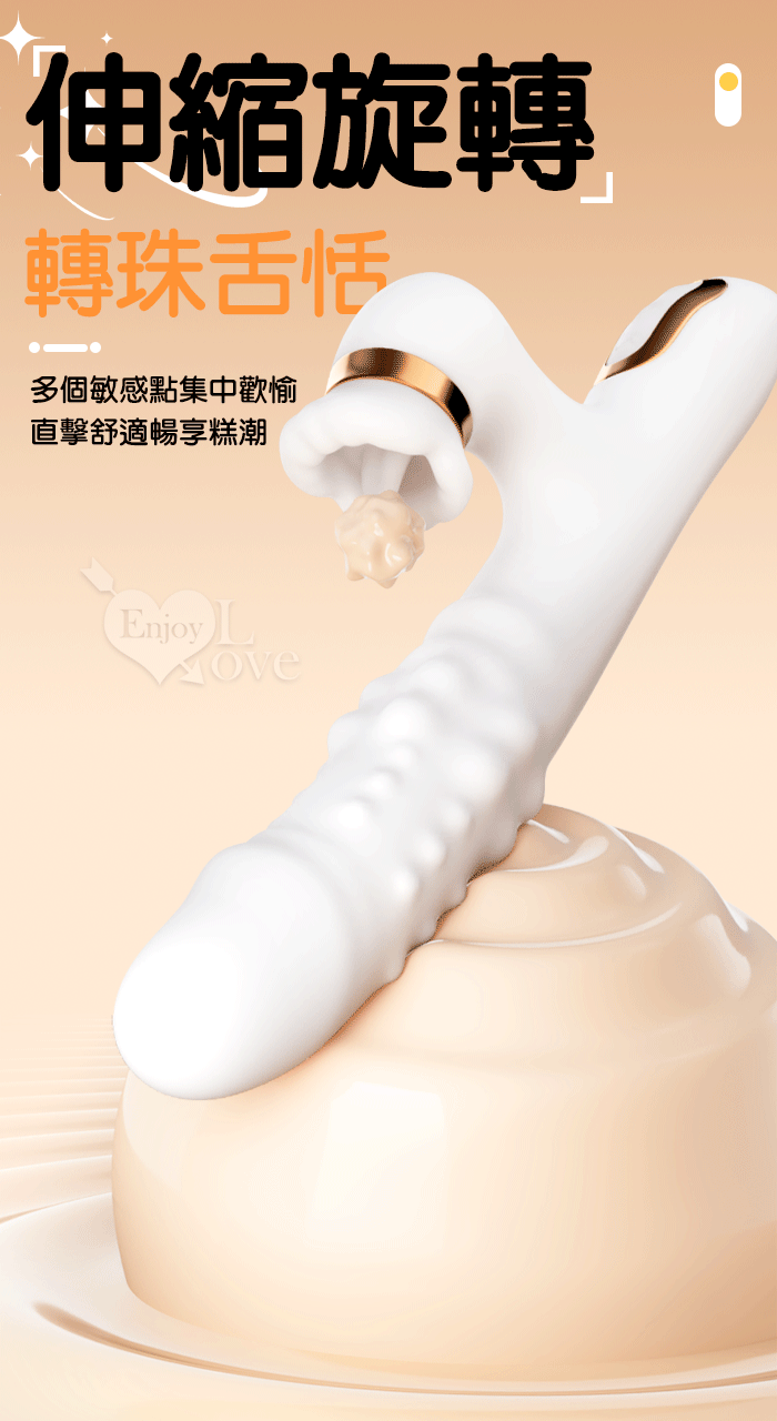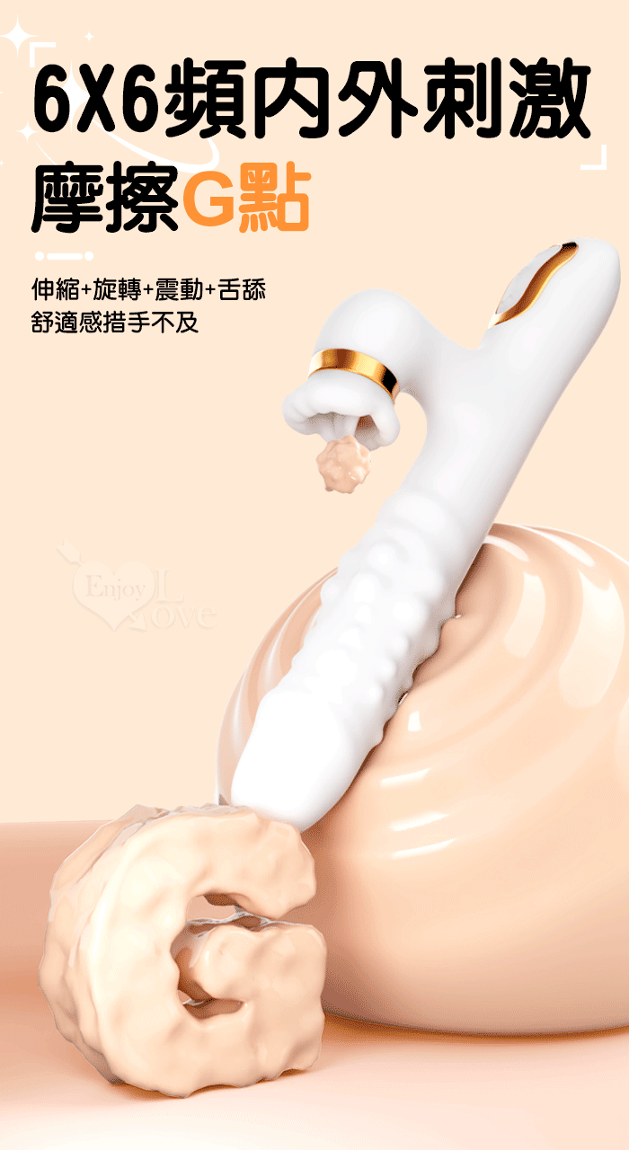 珠旋四重奏 ‧ 6X6伸縮+旋轉+震動+舌舔/內外刺激多功能按摩棒﹝智能加溫/雙排滾珠鑽動/舌舔撩﹞