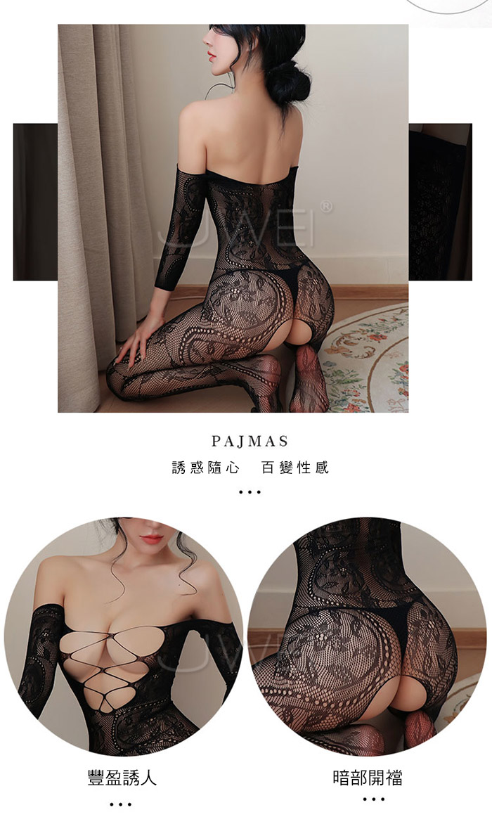 | 獵豔織網.胸前大鏤空透視美背開襠吊襪連體性感貓裝