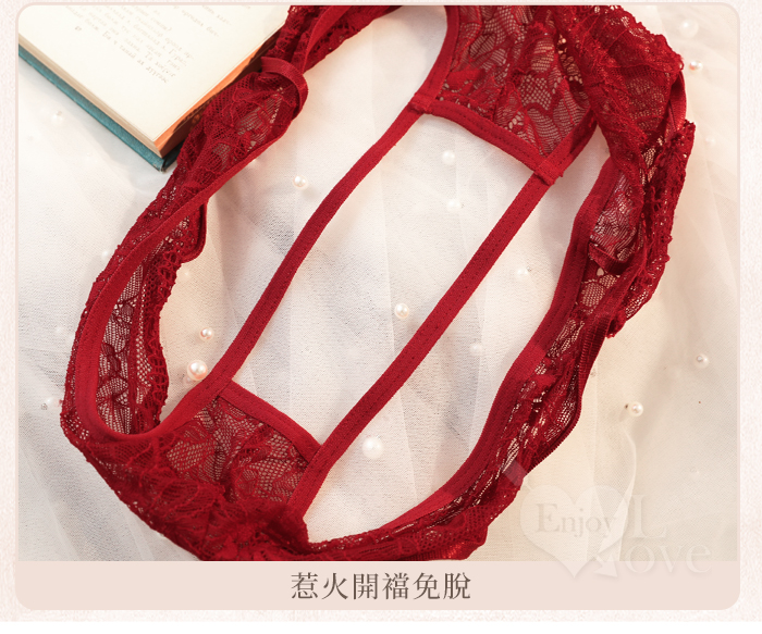 空氣感花蔓透紗·纏腰細帶|開襠免脫情趣內褲﹝紅﹞