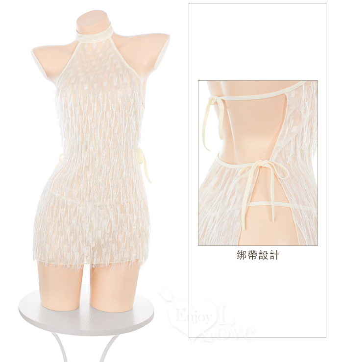 情趣夜店派對服!削肩綁脖耀眼流蘇裸背側開衩性感連身裙兩件組﹝粉﹞