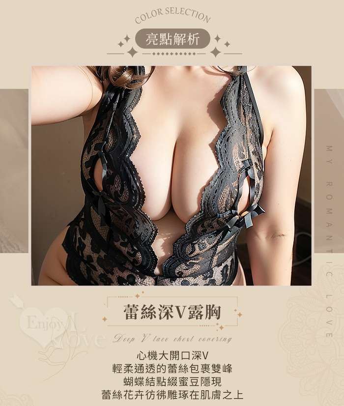 ►您現在的位置:首頁>【棉花糖女孩】大尺碼狂野連身衣!深V蕾絲菱形挖空美背開襠連身衣﹝黑﹞