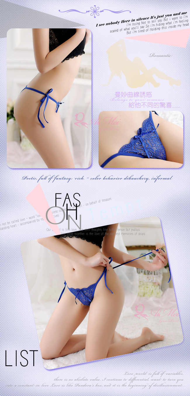 | 窺探之夜!誘人側綁帶蕾絲丁字褲﹝寶藍﹞