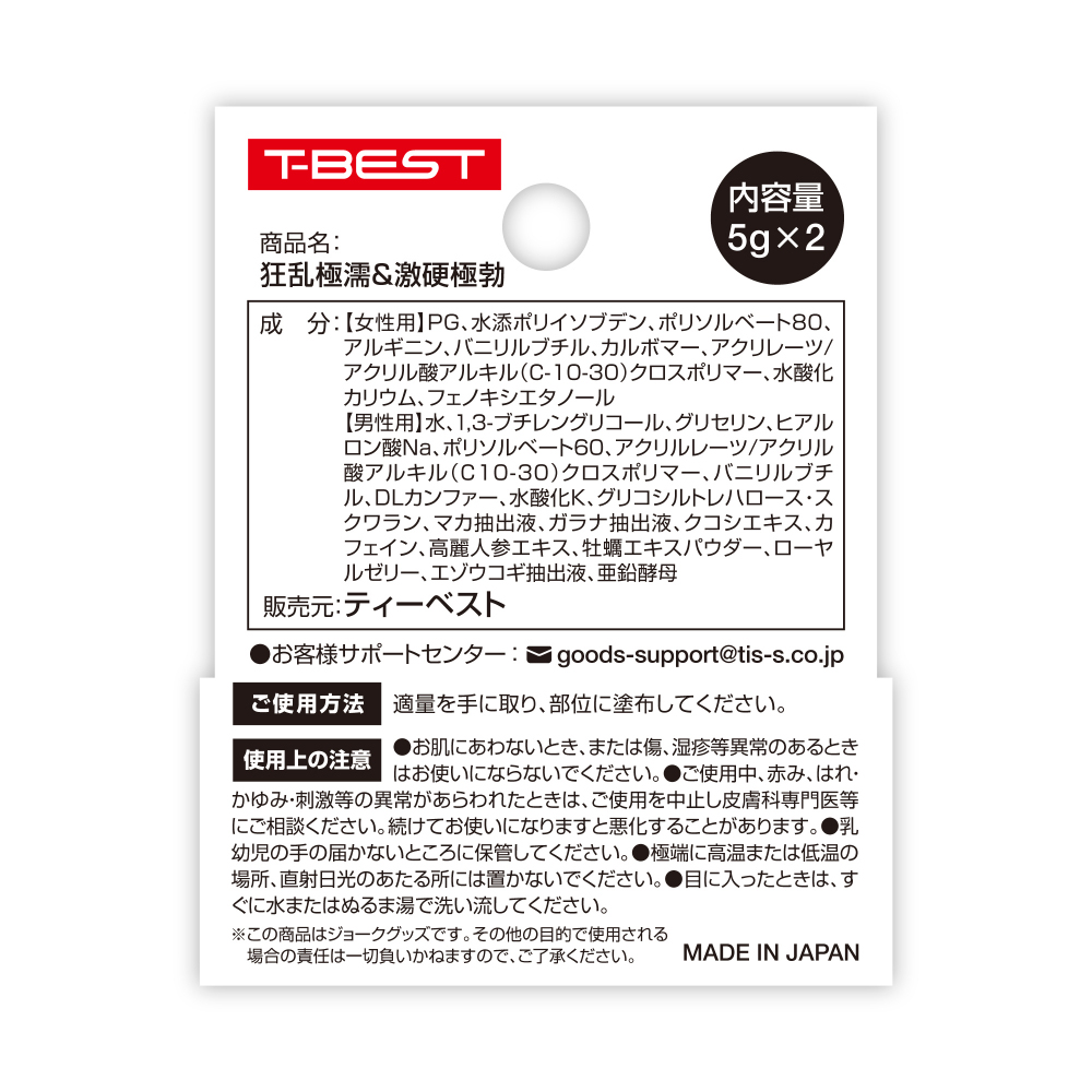 ►您現在的位置:首頁>日本 T-BEST 激愛組合女用狂亂極濡+男用激硬極勃軟霜(5gx2)
