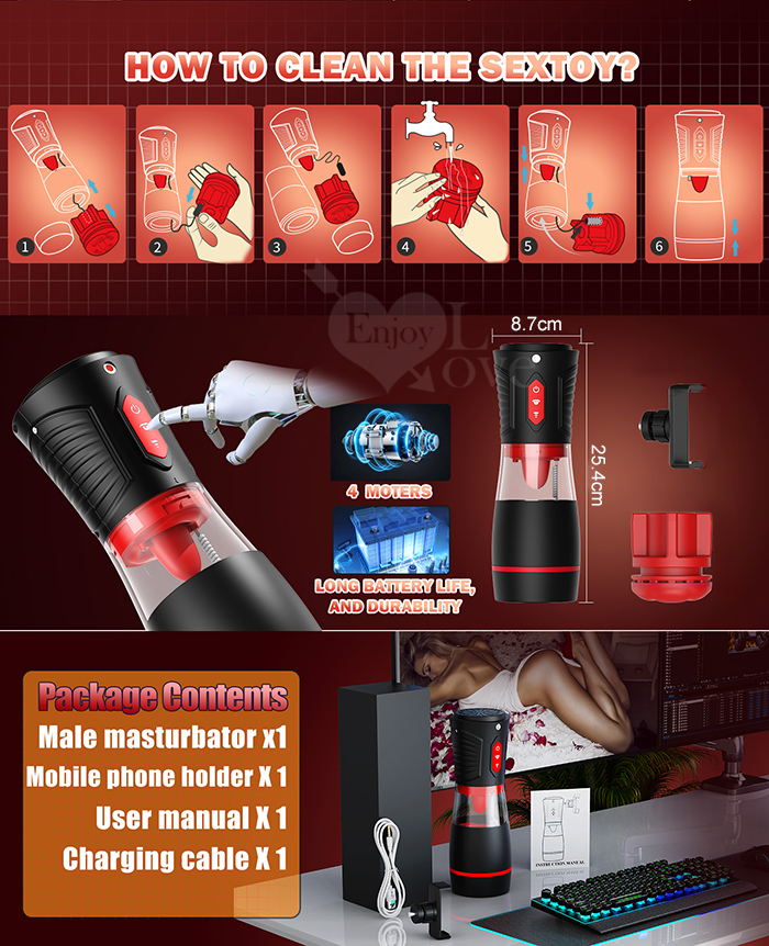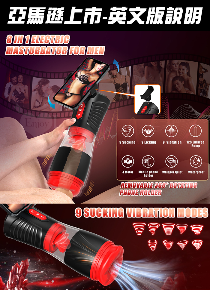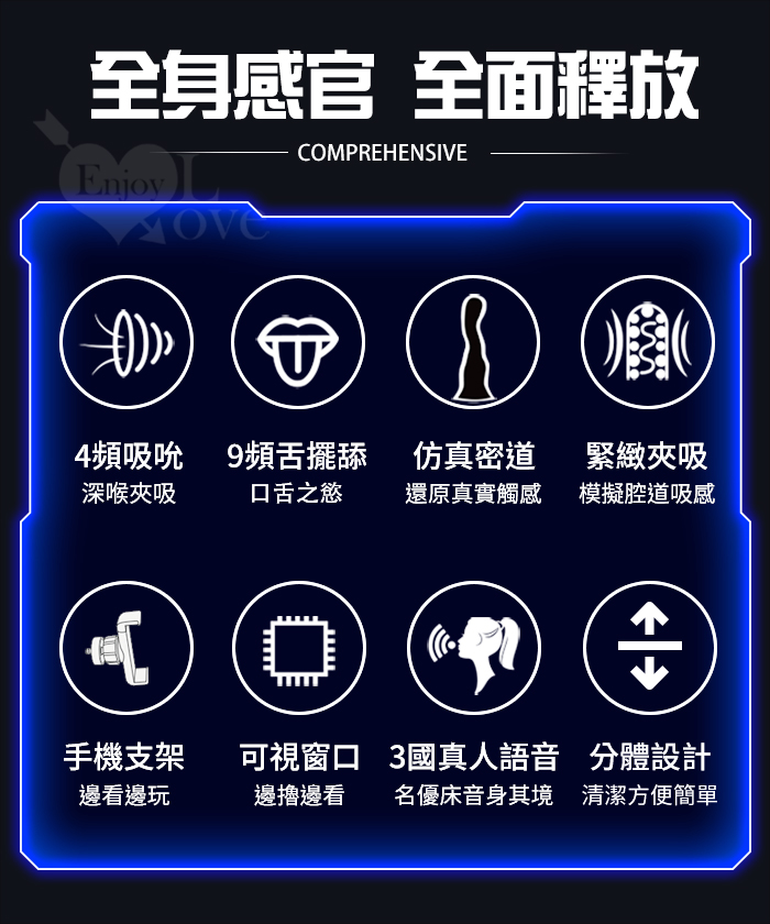 Hgod 007-II ‧ AI新智能自動舌舔+吞莖吮吸快感電動飛機杯﹝4頻收縮吸吮X9頻舌擺舔+淫聲耳機+手機架﹞
