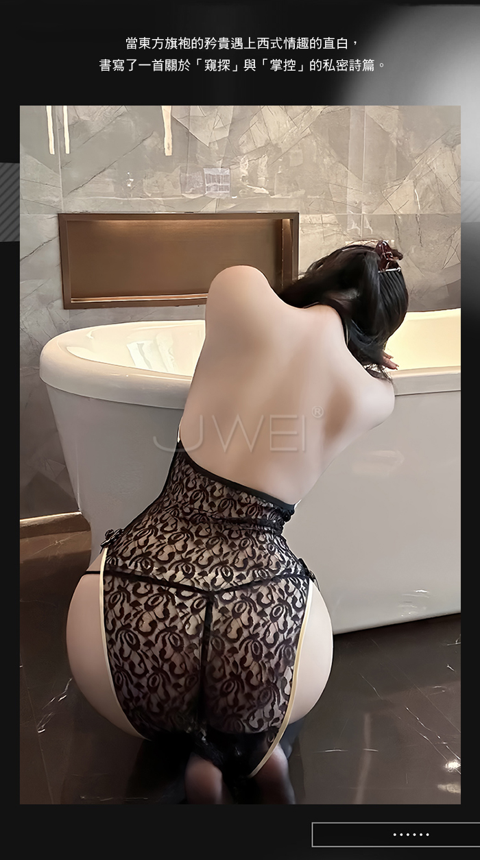 | 墨染鎏金.性感純欲蕾絲花紋低胸開衩美背旗袍【旗袍+T褲】