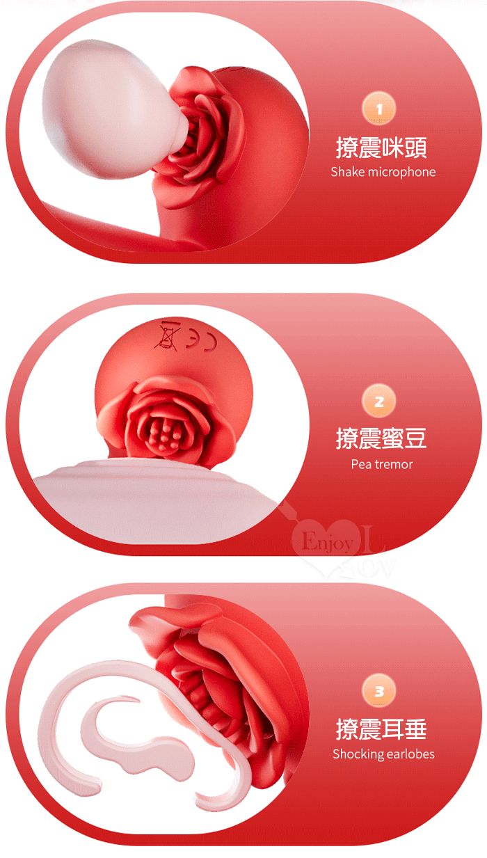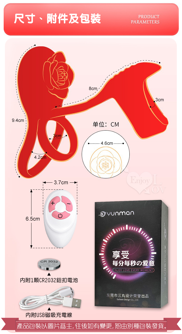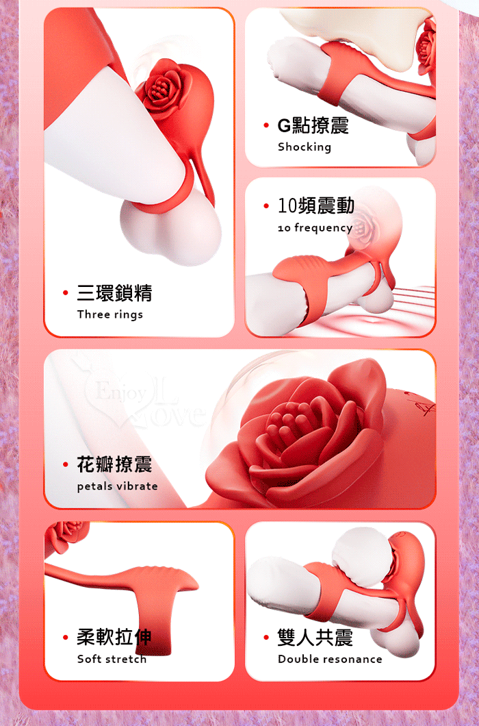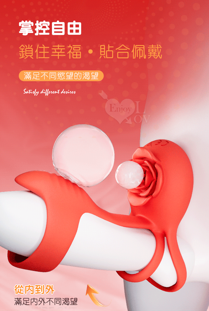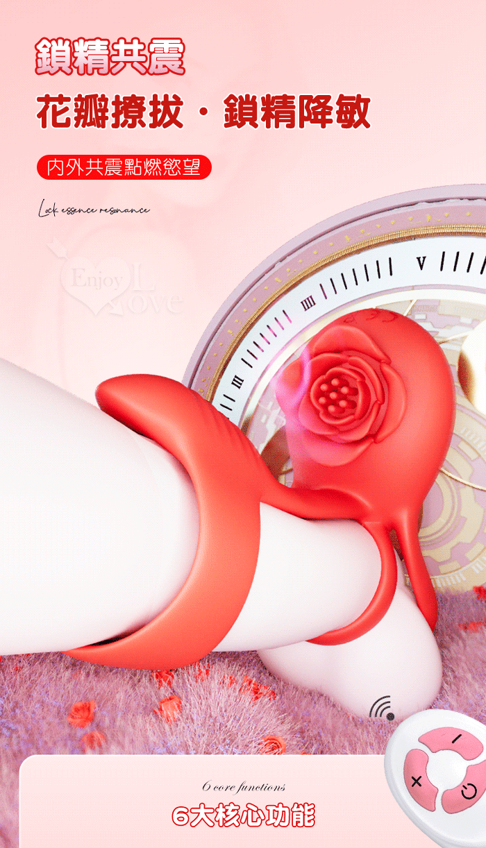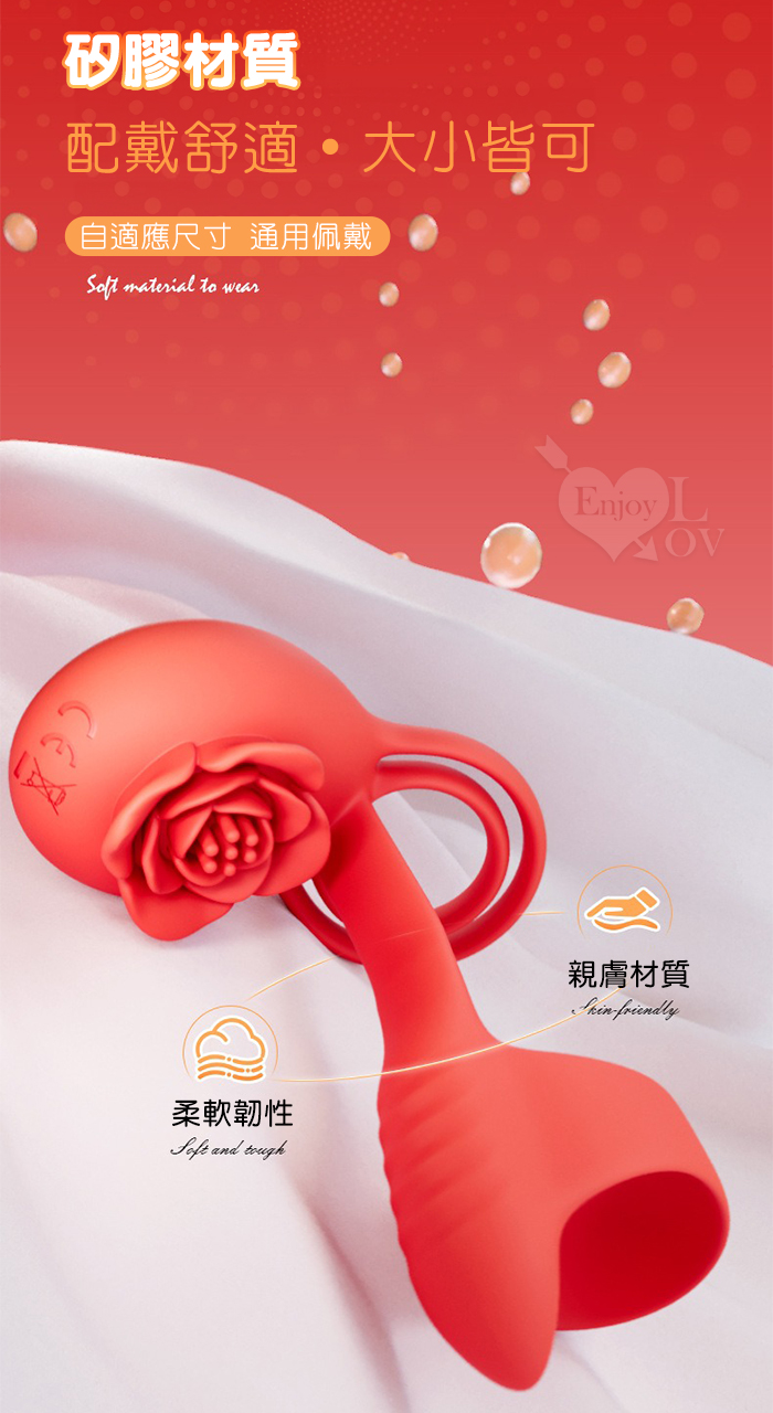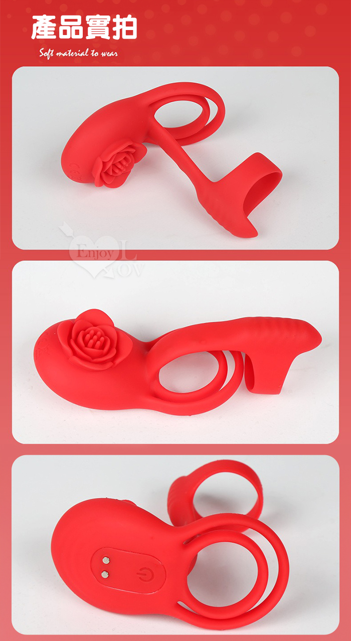 YUNMAN 云曼 ‧ 玫瑰內外雙震加強套環﹝無線遙控/男女共爽/10頻双強震/3環鎖精固蛋/花瓣撩撥蜜豆/矽膠舒適﹞