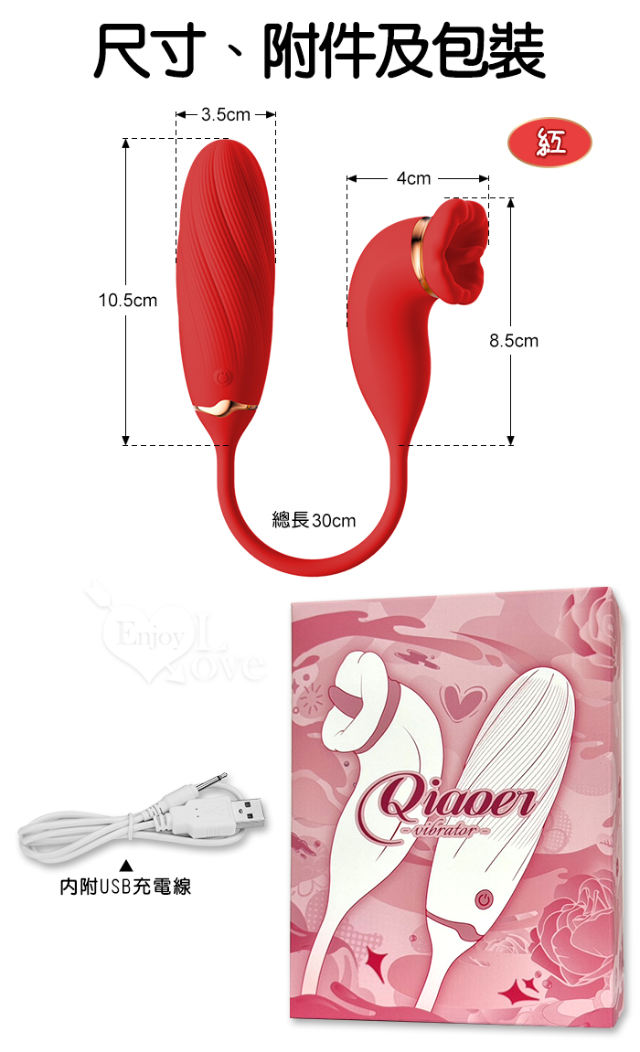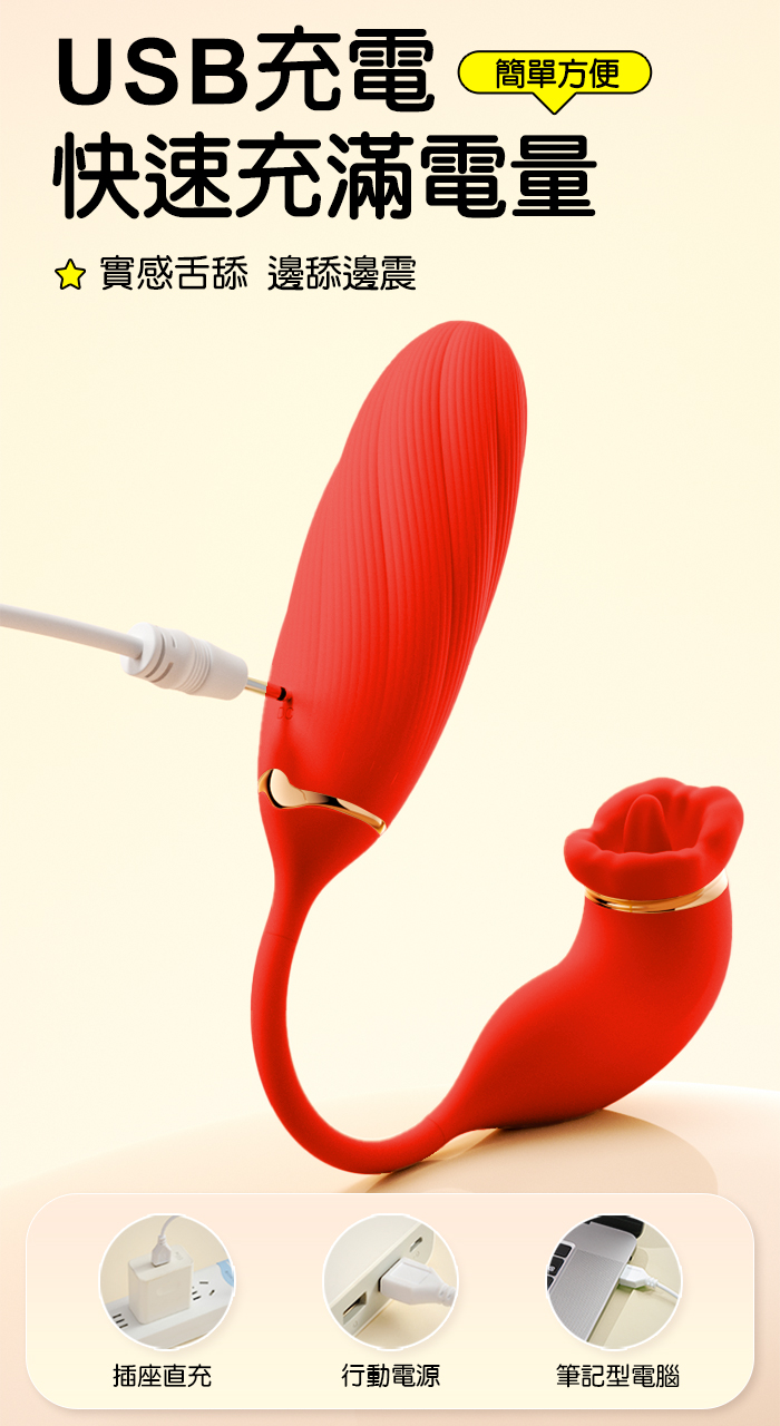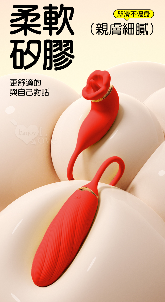 ROSELEX 俏兒 ‧ 魔舌蜜嘴狂撩+長跳蛋 舔震聯手雙組合按摩器﹝花樣玩法/10頻強震/內外同享潮吹/親膚矽膠﹞紅