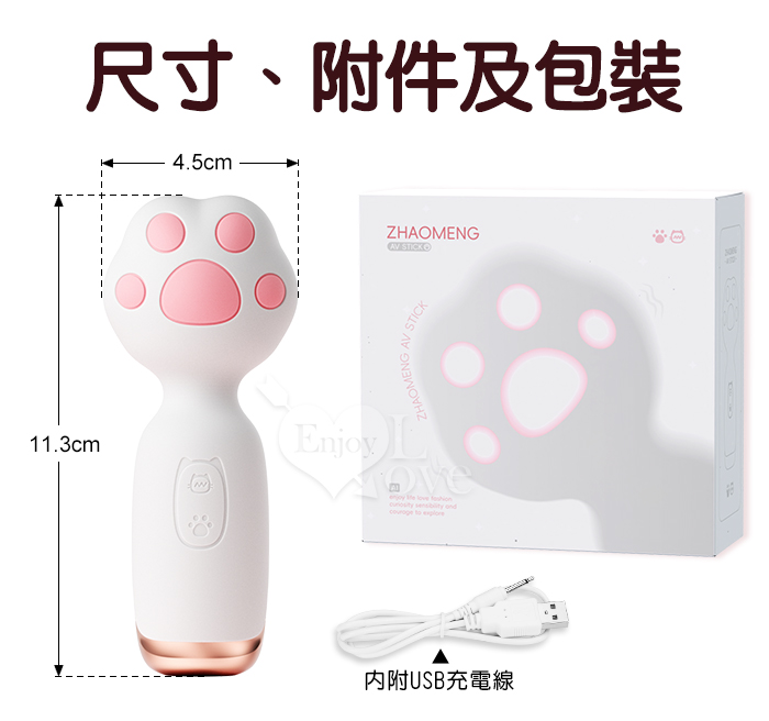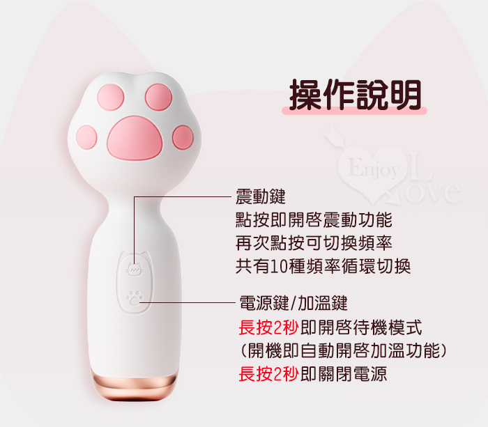 ROSELEX 萌爪AV棒 ‧ 可愛小貓爪加溫震動棒-10頻震動陰蒂刺激調情自慰 - 白