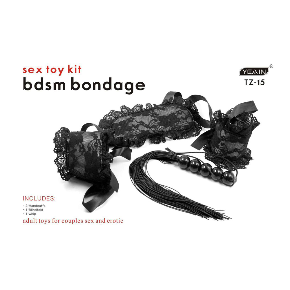 滿2000元贈品 SM情趣調情組合黑色情慾蕾絲三件套(眼罩+手銬+鞭子)