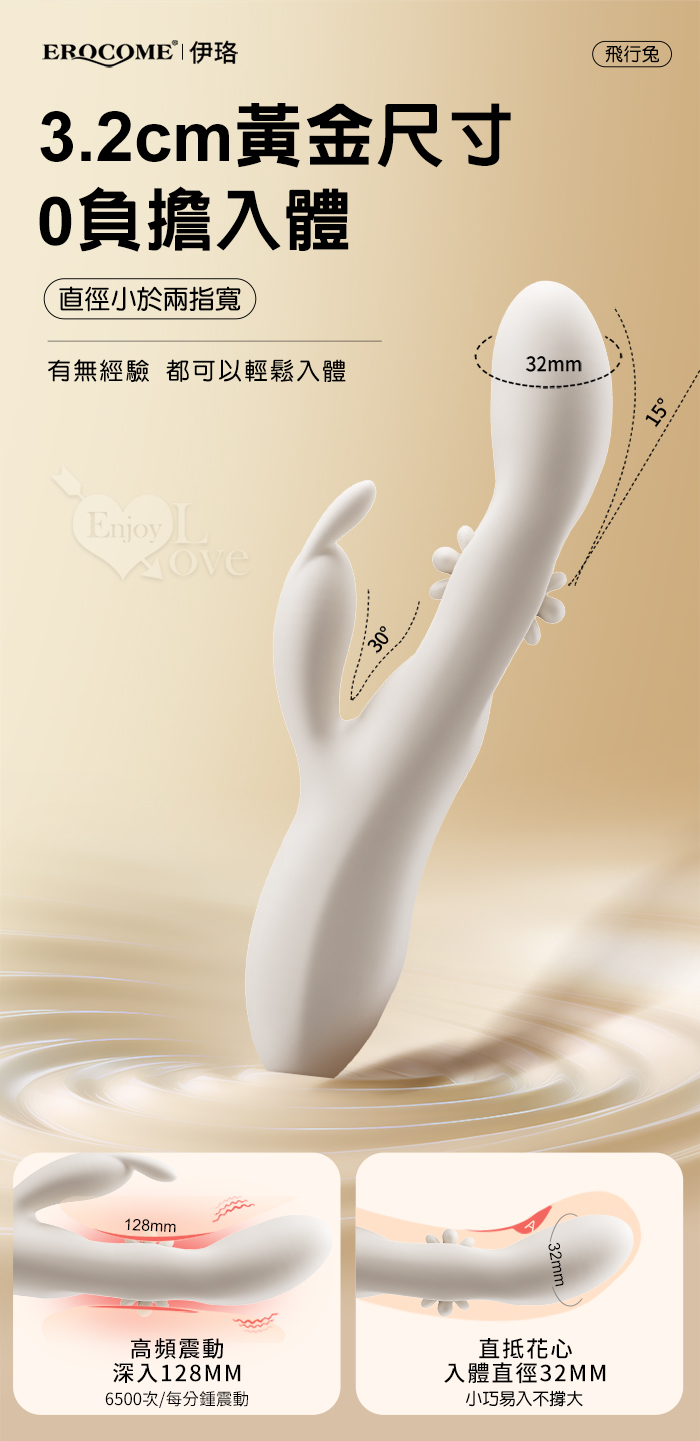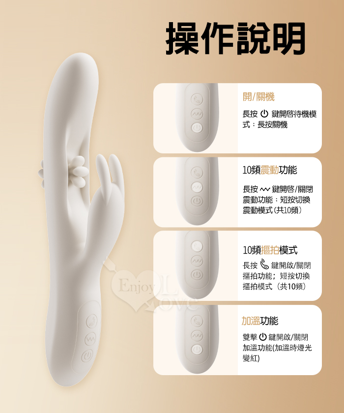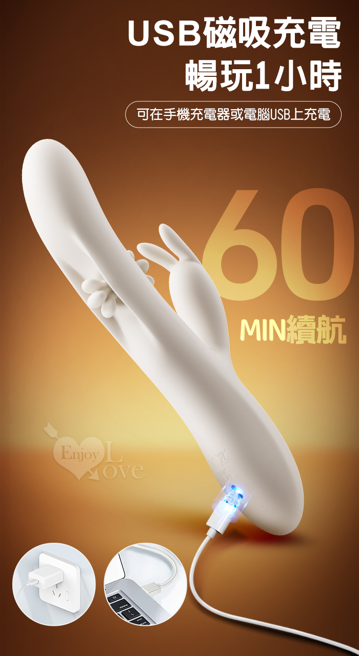 | EROCOME伊珞.Flying Bunny 飛行兔 10x10頻飛輪軟舌兔耳震動拍打雙震加溫3合1按摩棒