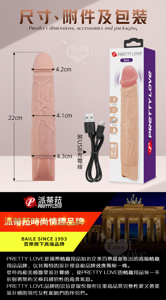 | 派蒂菈 ‧ Osric 奧斯里克 10段變頻震動 膚色肌仿真筋絡威猛老二造型充電按摩棒﹝NO.2/8.8″ 22cm﹞