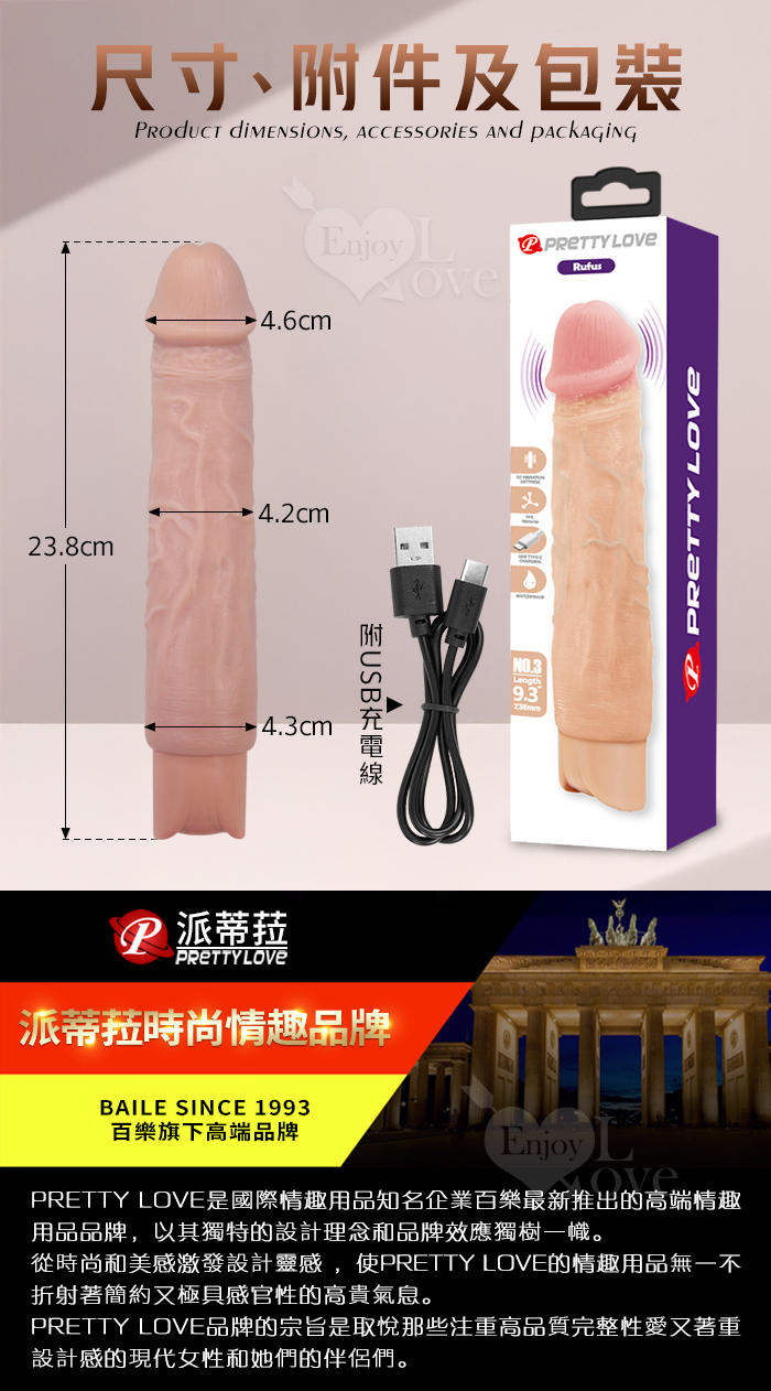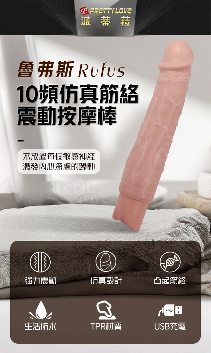 派蒂菈 ‧ Rufus 魯弗斯 10段變頻震動 膚色肌仿真筋絡大老二造型充電按摩棒 NO.3﹝9.3″ 23.8cm﹞
