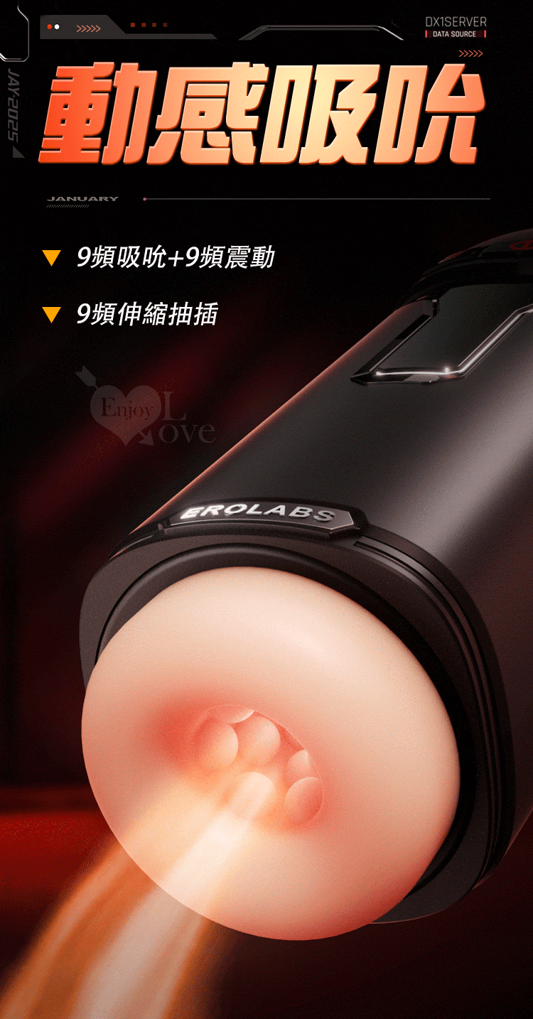EROLABS 擼霸全配版 ‧ 智能伸縮/吸吮/震動/語音 緊實肉感自慰鍛練杯﹝液晶數碼9頻伸縮X9頻吸吮X9強震+4國淫聲+耳機﹞黑色