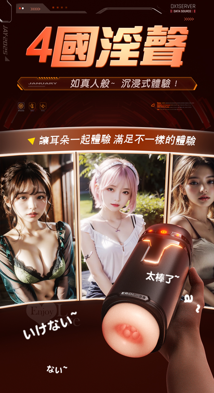 EROLABS 擼霸全配版 ‧ 智能伸縮/吸吮/震動/語音 緊實肉感自慰鍛練杯﹝液晶數碼9頻伸縮X9頻吸吮X9強震+4國淫聲+耳機﹞白色