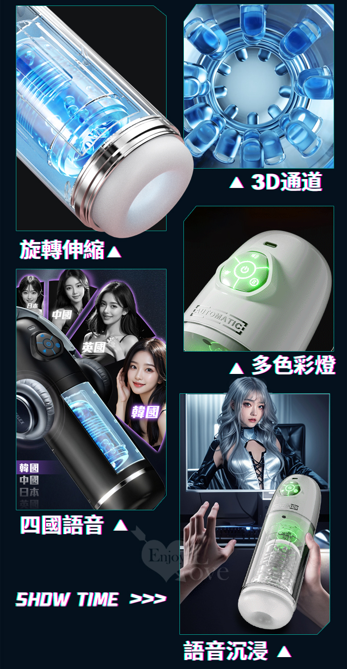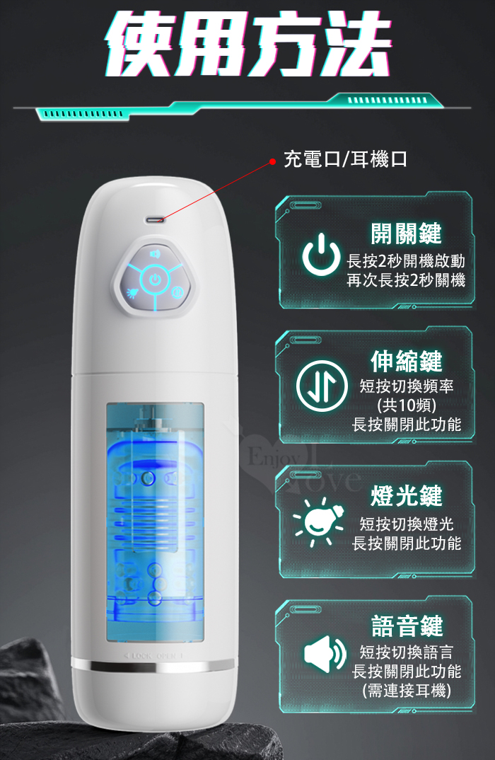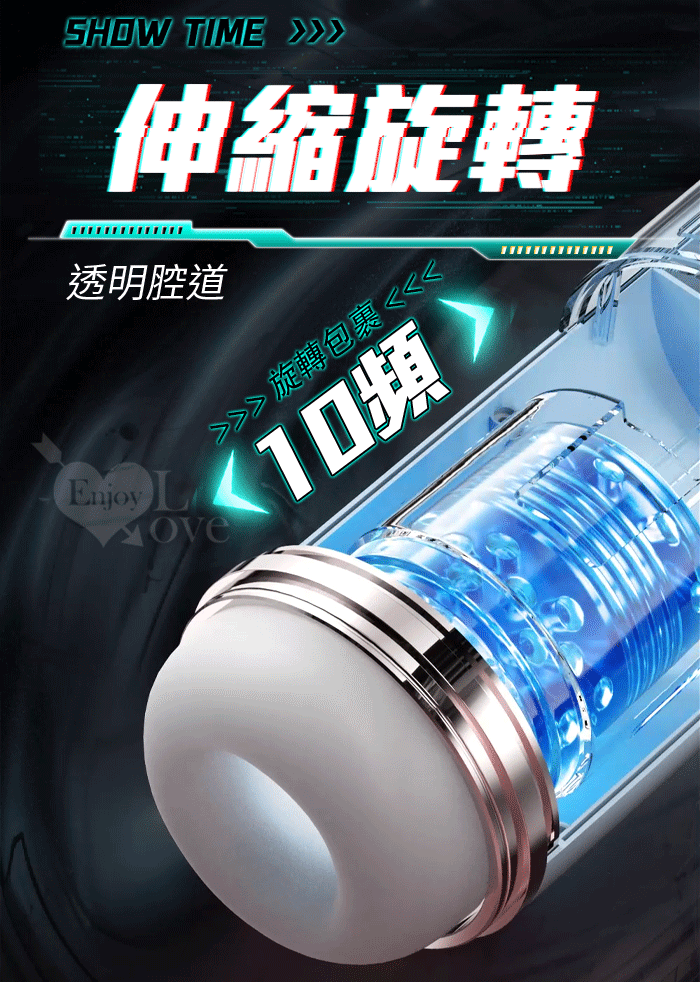 ROSELEX勞樂斯.頭號玩家 10頻伸縮旋轉透明腔道元氣飛機杯﹝四國語音呻吟+多彩氛圍燈+耳機﹞白
