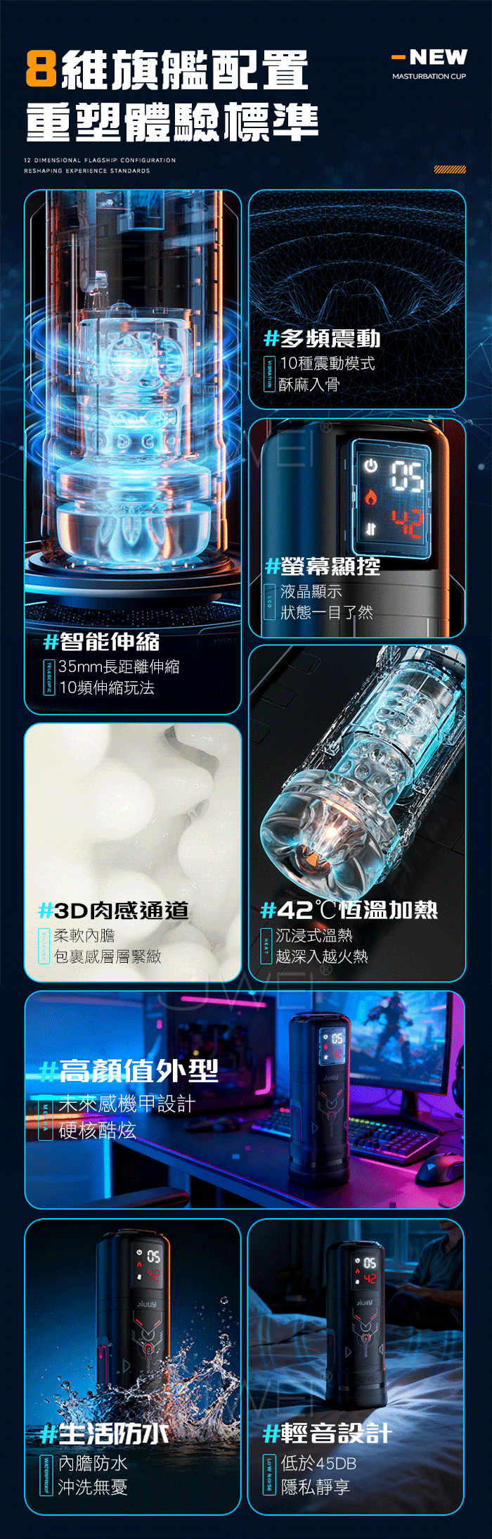 | 烈空者.8段夾吸+8段爆震 深穴吞吐榨汁 加溫抑菌APP智控自擼飛機杯