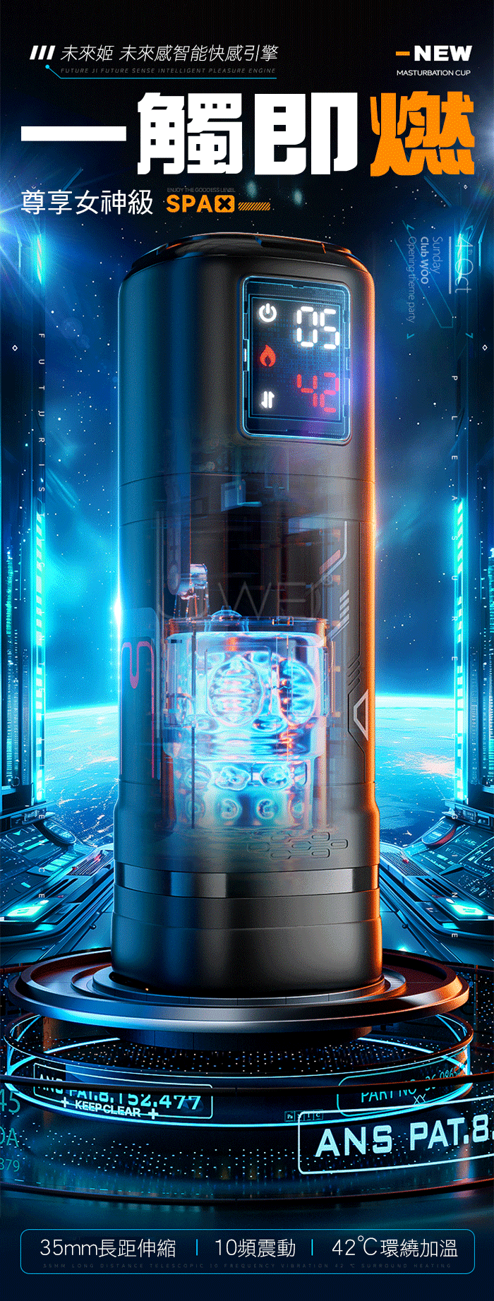 | 未來姬.10x10段伸縮激顫 4D肉感恆溫加熱屏顯飛機杯【白色基礎款】