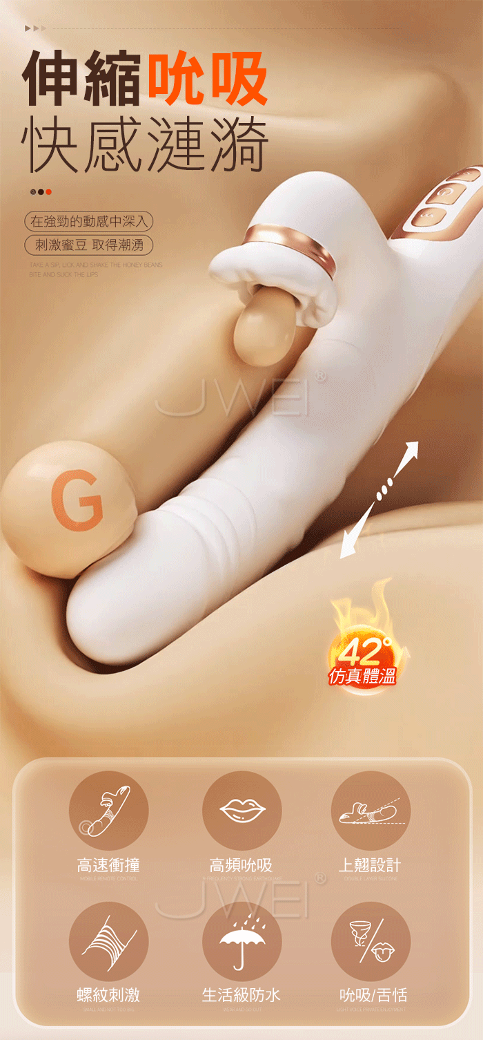 ■功能:10頻震動、10種伸縮、10頻吮吸、自動加溫
