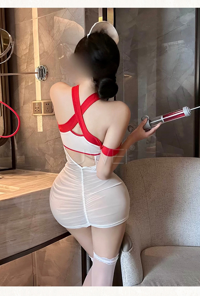 ►您現在的位置:首頁>夜診玫瑰.純欲下胸挖空交叉肩帶美背包臀小護士cos套裝【洋裝+T褲】