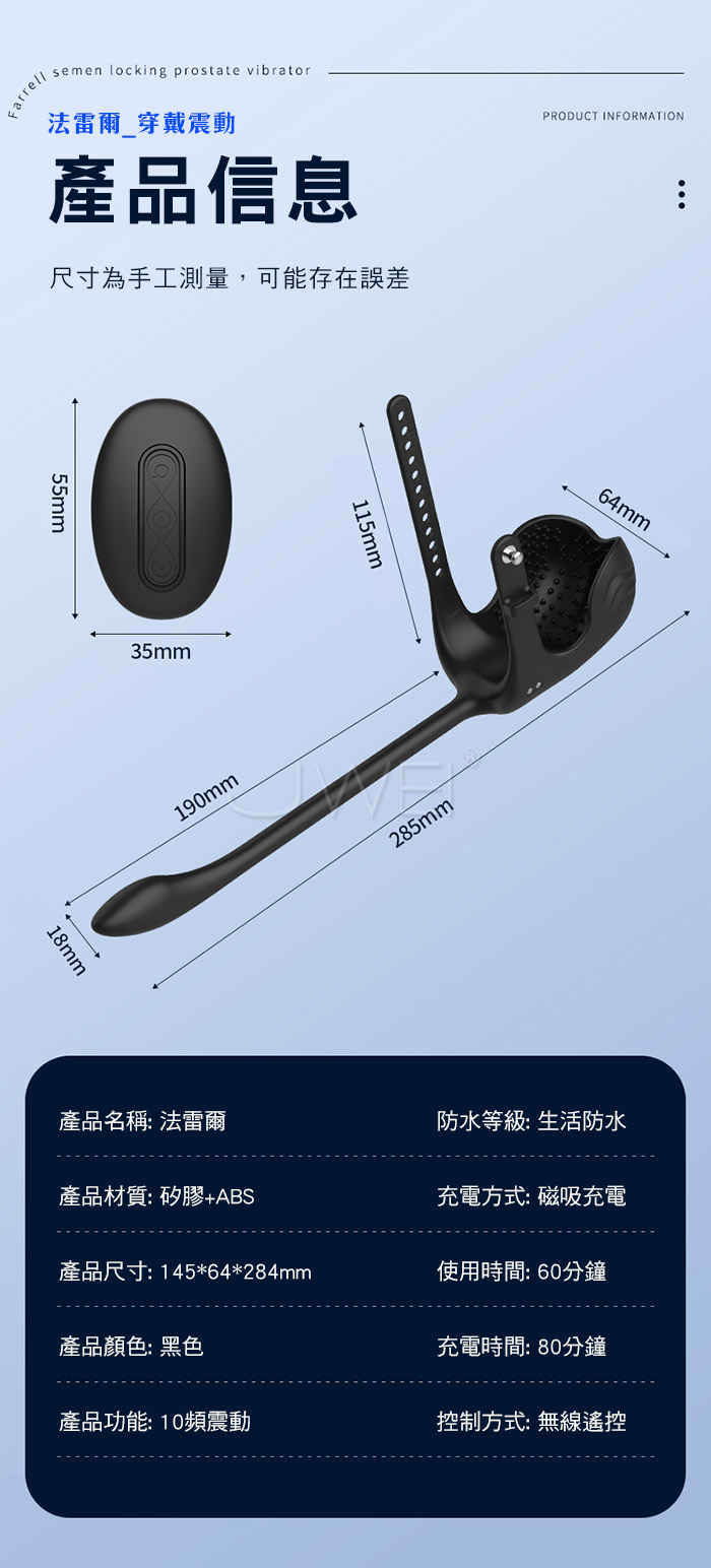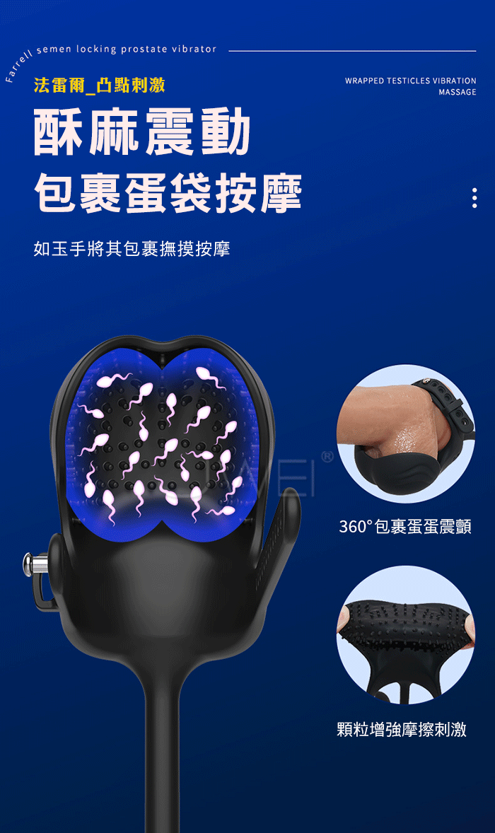 | 法雷爾.10頻遙控強震刺激 360度包覆蛋蛋 顆粒增強無射快感 束精穿戴前高按摩器