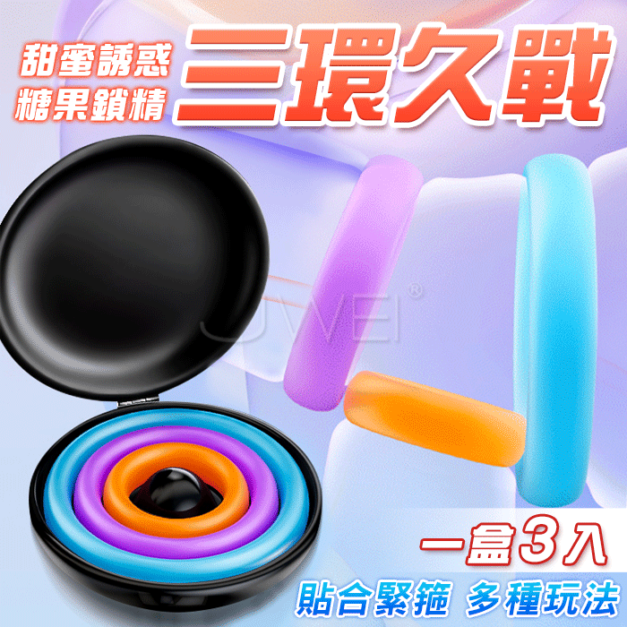 棒棒糖.繽紛糖果色系 三環久戰帶盒物理鎖精延時環【3入盒裝】