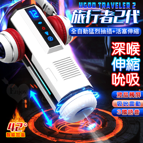 滿4000元贈品 Hgod 旅行者2代 ‧ 液晶觸屏全自動猛烈抽插+活塞伸縮+互動發音+真空吸吮口交飛機自慰杯﹝5種伸縮衝擊+5頻吸吮震動+3國語音耳機+USB充電﹞