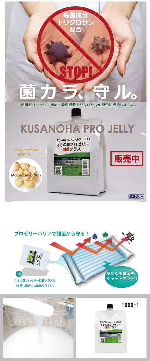 抗菌成分「トリクロサン」を配合した、プロ仕様の画期的なゼリータイプローション「くさの葉プロゼリー 除菌プラス 1000ml」。 優れた浸透性を持つマカダミアナッツ油配合なので、お肌に優しく、潤いをしっかりキープ。 さらに、殺菌成分のトリクロサンを配合で雑菌から皮膚を守ってくれるので、清潔で安心して使用できます。 たっぷり使えて安心、安全な、とってもお得なローションです。