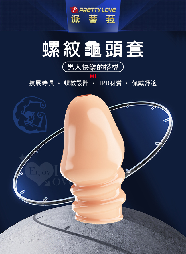 PRETTY LOVE 派蒂菈 ‧ JEREMY 傑里米 螺紋武裝強化龜頭套 - 頭部出精口設計﹝膚色﹞