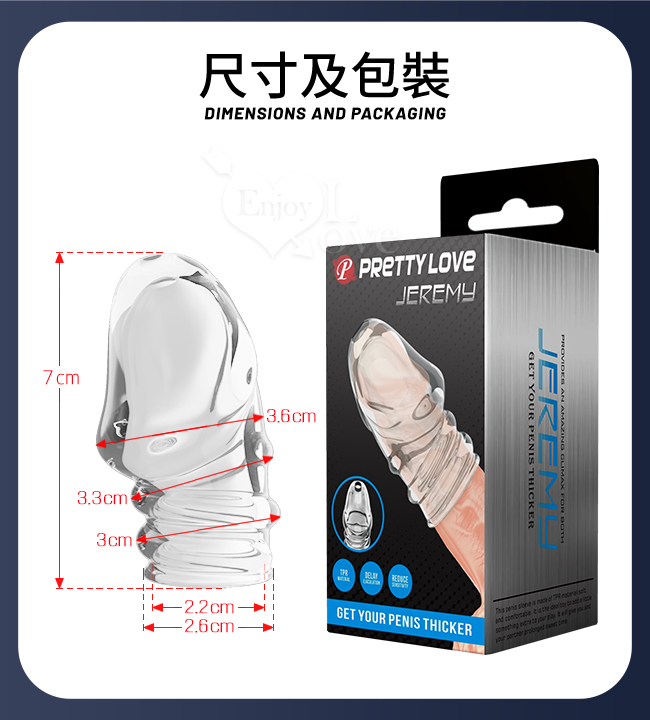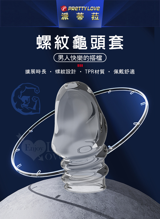 PRETTY LOVE 派蒂菈 ‧ JEREMY 傑里米 螺紋武裝強化龜頭套 - 頭部出精口設計﹝透明白﹞