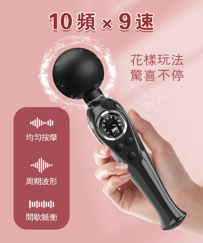 派蒂菈 ‧ SKYLER 斯凱樂 LED顯示10變頻X9段調速強震矽膠大頭AV棒 - 黝黑 (輕鬆GET敏感地帶 )