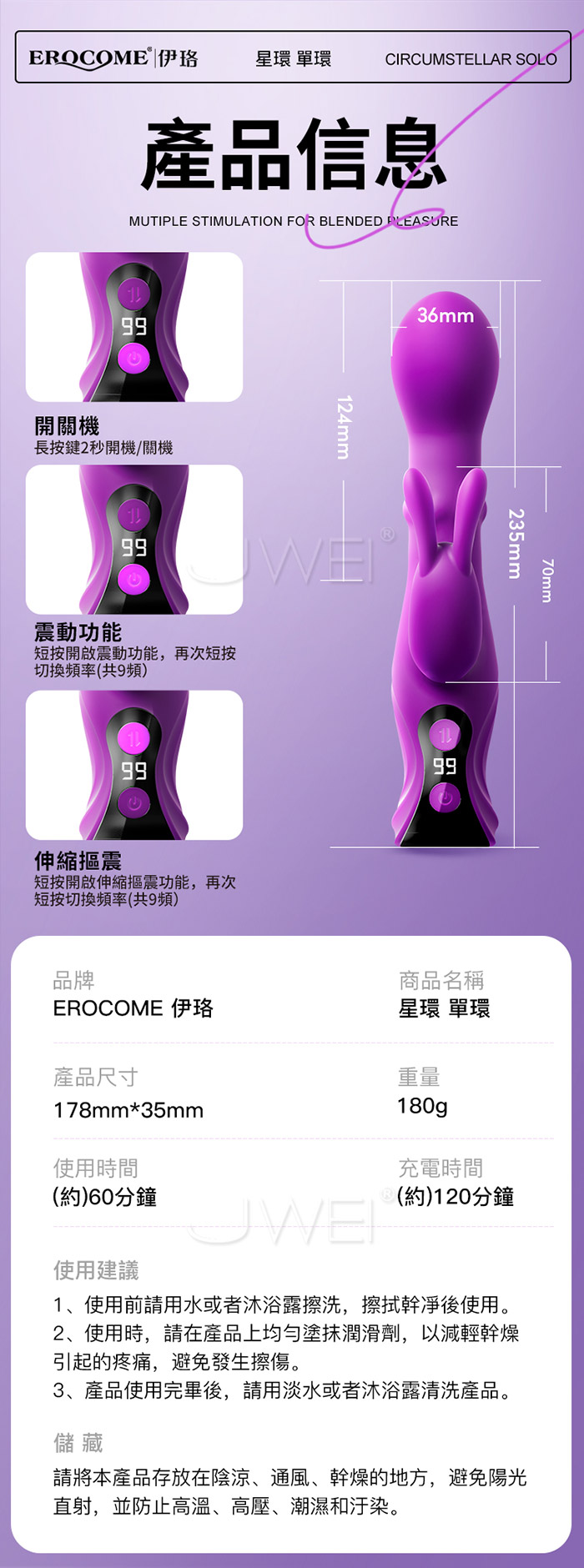 首頁>EROCOME伊珞.CIRCUMSTELLAR Solo 星環座 9x9頻摳震擼珠伸縮舔震 兔耳按摩棒【單環擼珠】