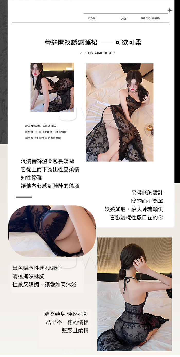 ►您現在的位置:首頁>柔欲佳人.蕾絲蕩領美背半露兩側開衩透視睡裙-紫色【連衣裙+T褲】
