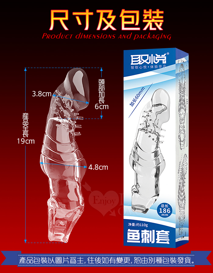 ►您現在的位置:首頁>取悅 ‧ 鱼刺套 顆粒刺激~長時堅挺~前端實心變粗變大加強套﹝增長6公分+凸粗+束精+套蛋﹞