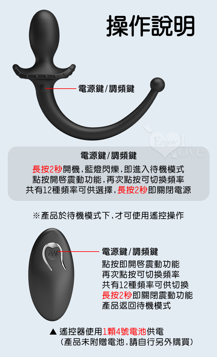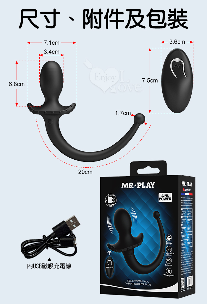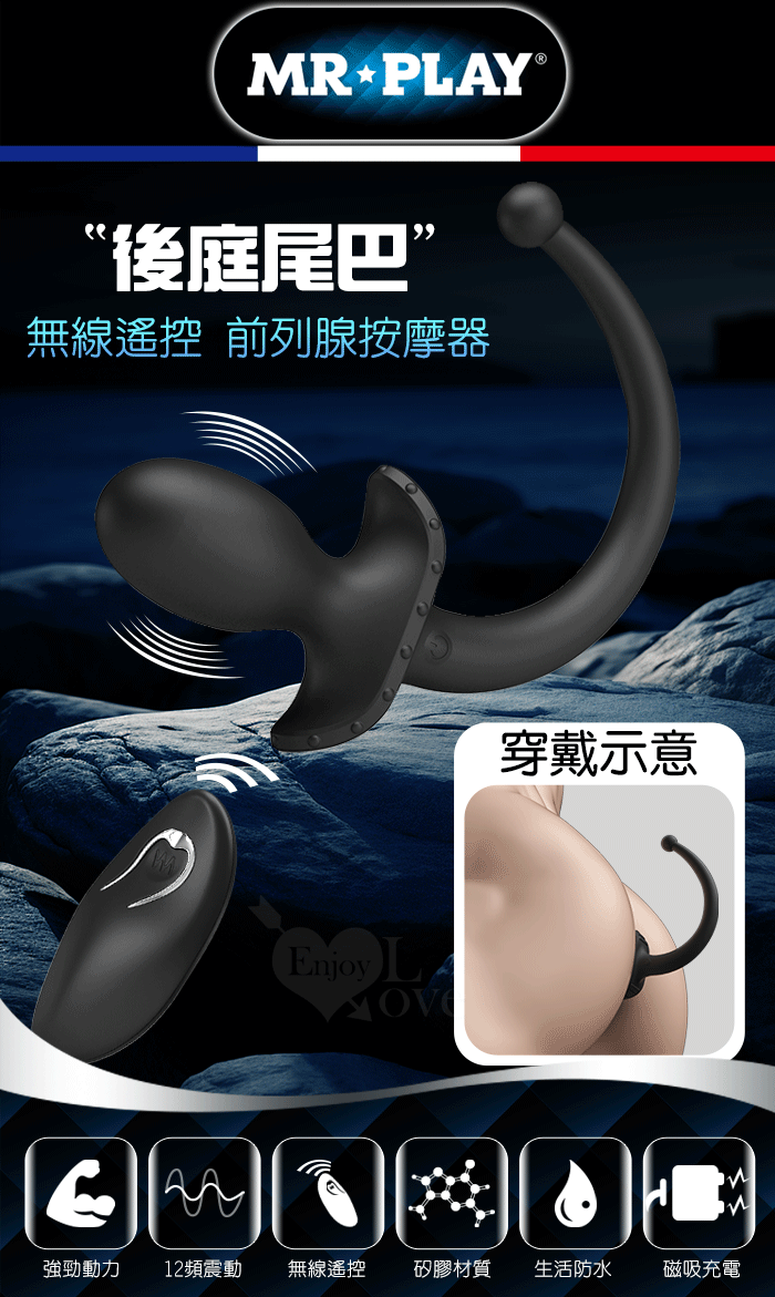 | MR‧PLAY 雙頭可用~無線遙控12頻強力震動前列腺-後庭按摩器-男女狗奴扮演尾巴/親膚矽膠/磁吸充電/多樣玩法